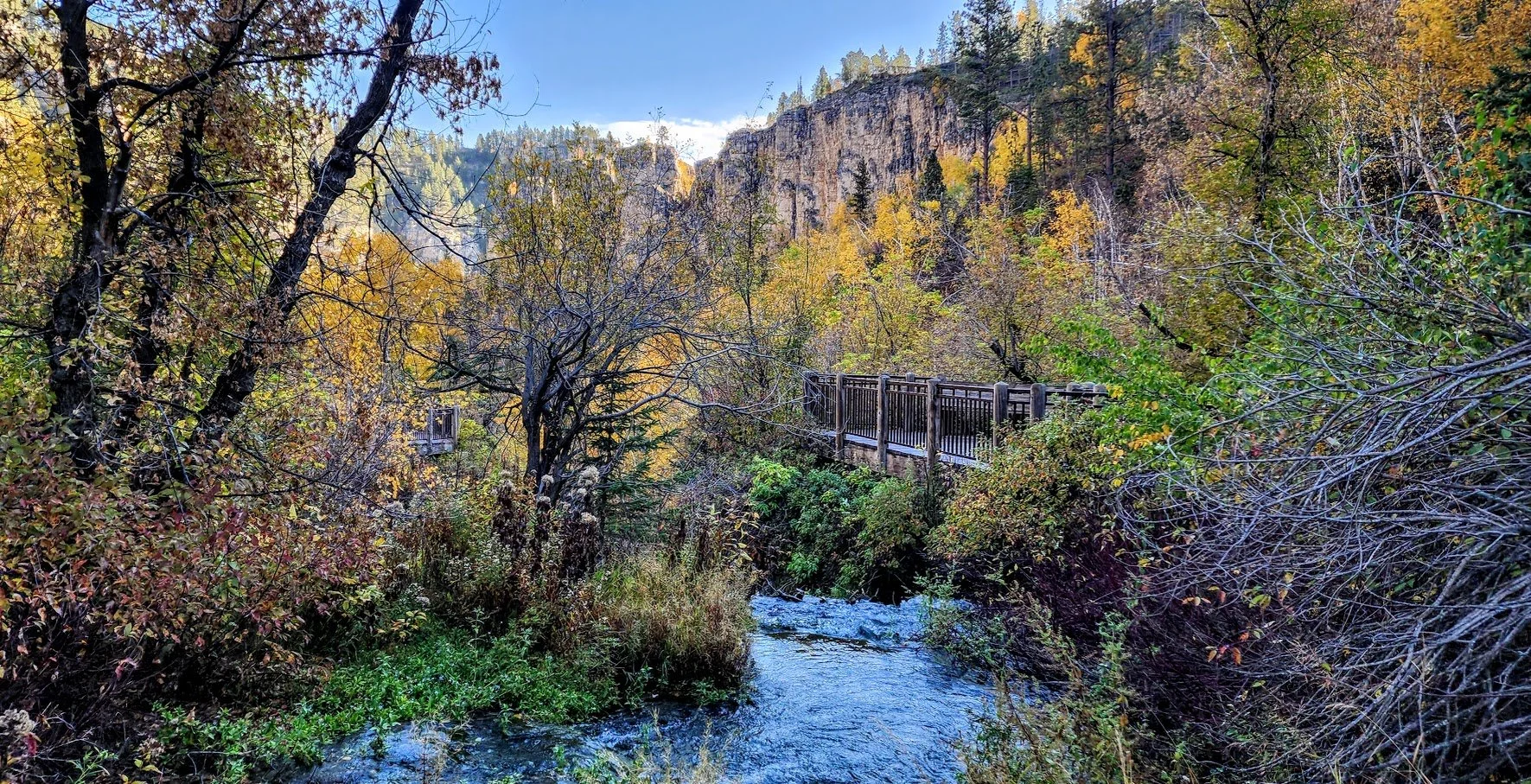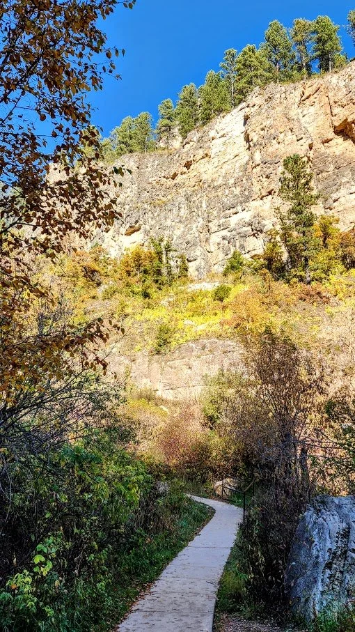 At the bottom of the falls, the path to Spearfish Canyon Lodge.