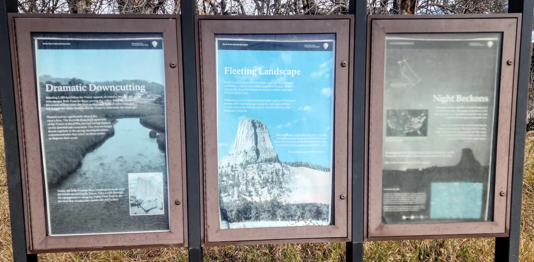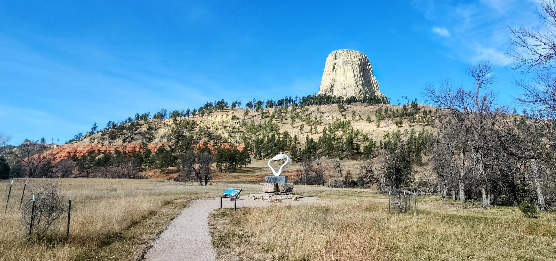 The Circle of Sacred Smoke Sculpture (Wind Circle Sculpture) was done by artist Junkyu Muto. It is a sign of world peace that pays homage to the American people. The statue is the 3rd of 7 works planned by Muto around the world. The first two sculptures can be found in Bodhi, India, and the Vatican City. The sculpture depicts the first puff of smoke from a pipe as it is lit. The statute is at the bottom of Devil’s Tower near the Belle Fourche Campground and picnic grounds.