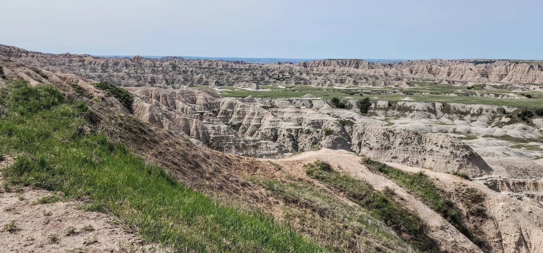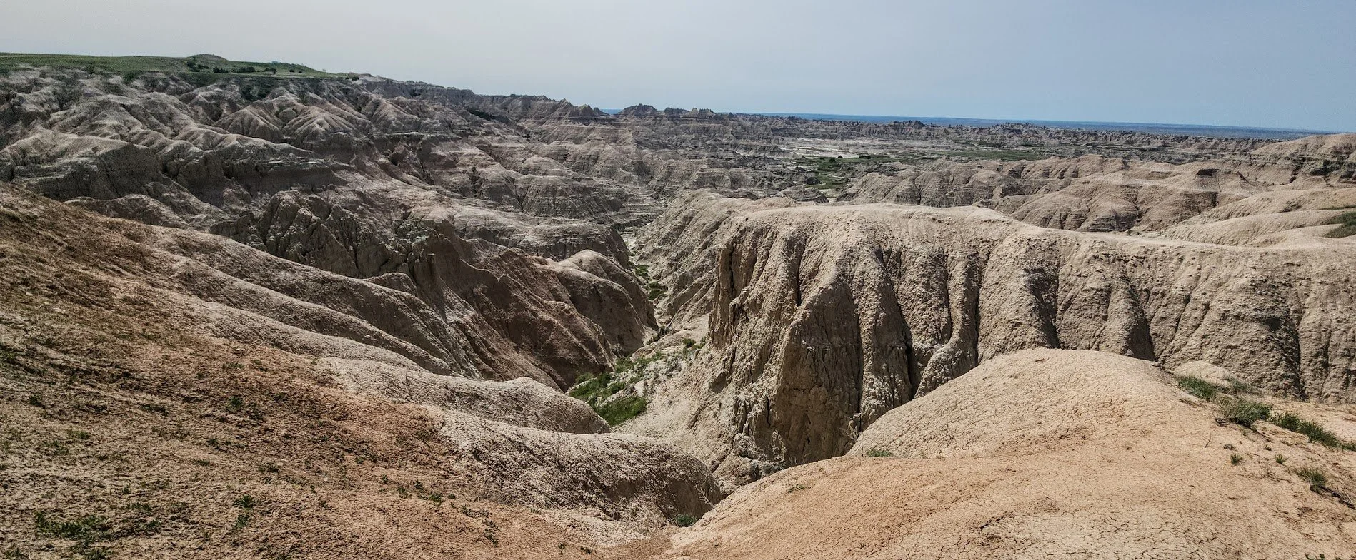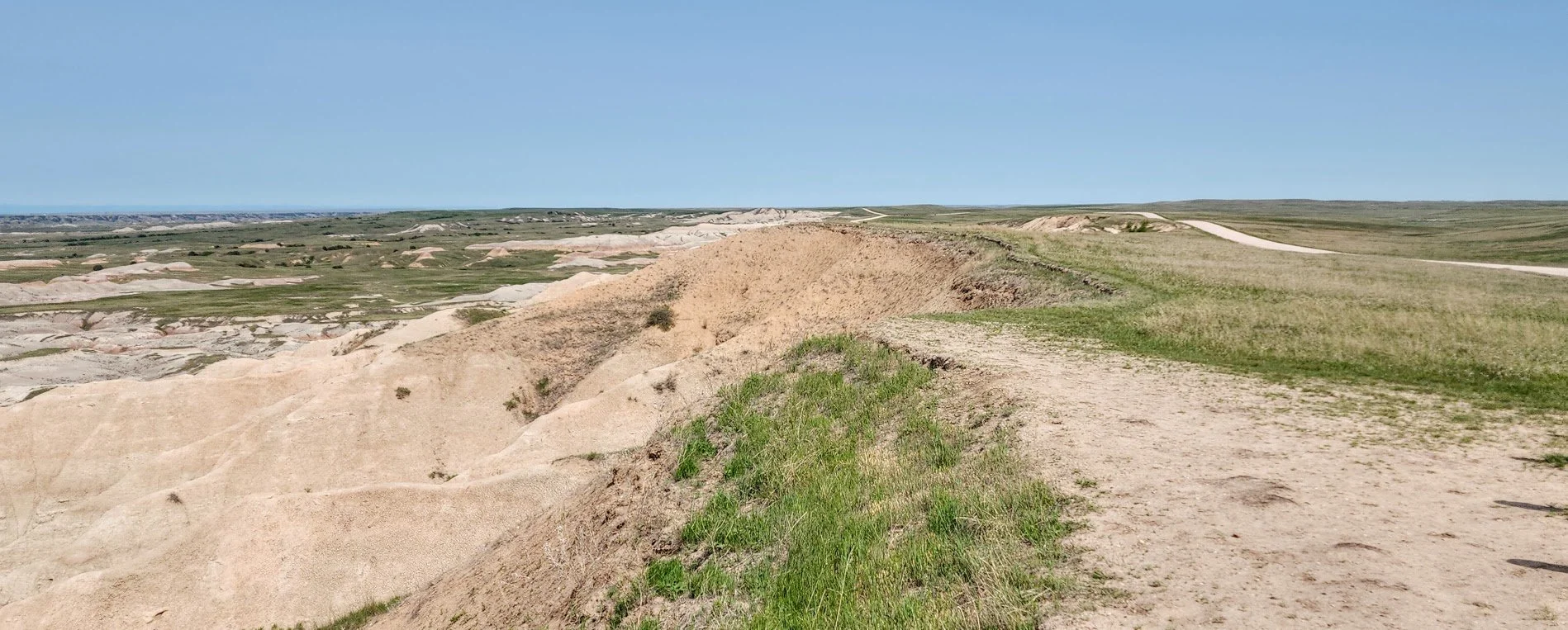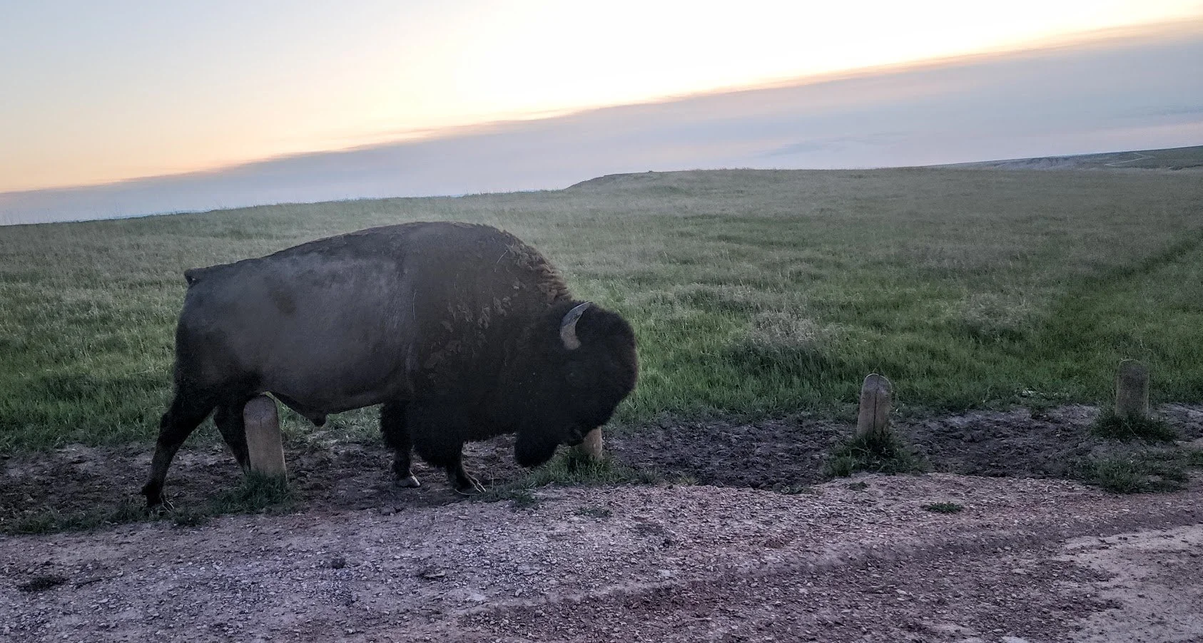 Sage Creek Rim Road is a 25 mile dirt road that runs between Highway 240 - Badlands Loop Road and E Highway 44. There are a lot more animals - buffalos, and antelope on this road, and it is usually not as busy. The road goes to several lookout spots and a prairie dog town which seems somewhat abandoned now. The road also takes you to the Sage Creek Campground which is free. The Sage Creek Basin Overlook is the last lookout, and a good place to turn around and get back on Highway 240, and return back to Wall or continue through the rest of the park. Sage Creek Rim Road may temporarily close after winter storms and spring rains. The road provides limited turnarounds for large recreational vehicles.