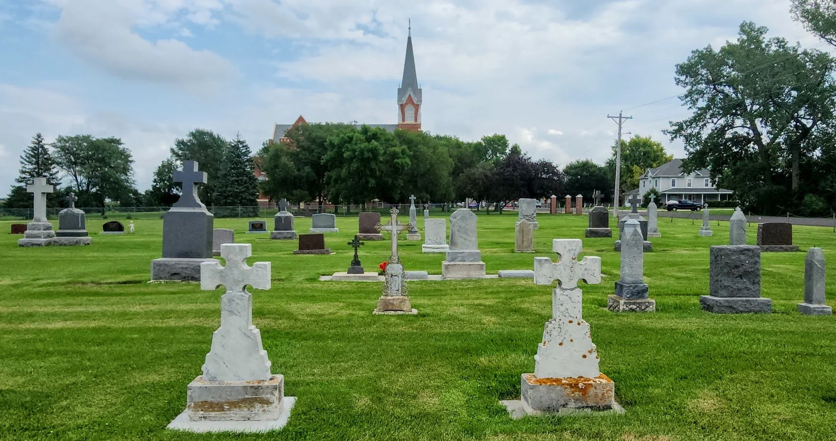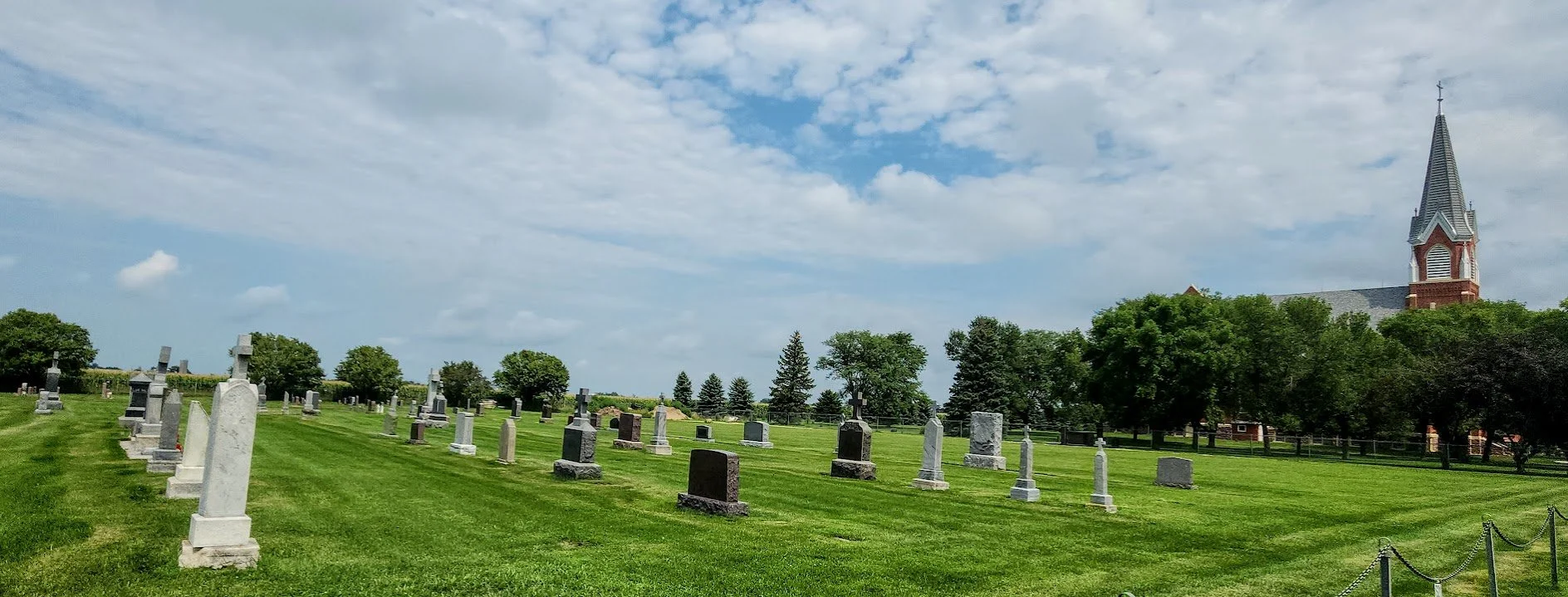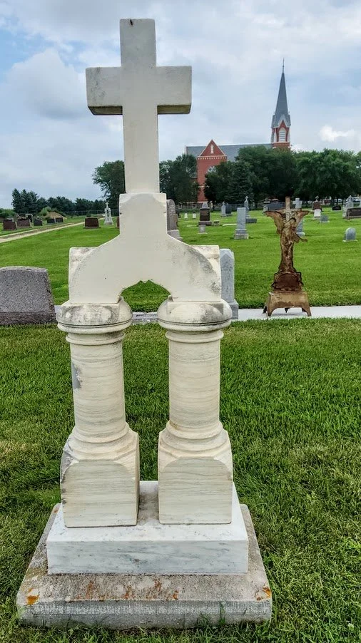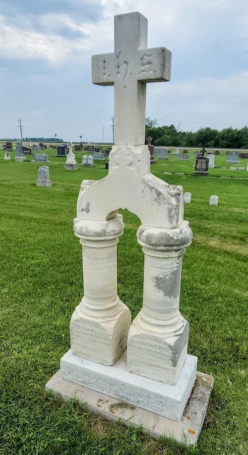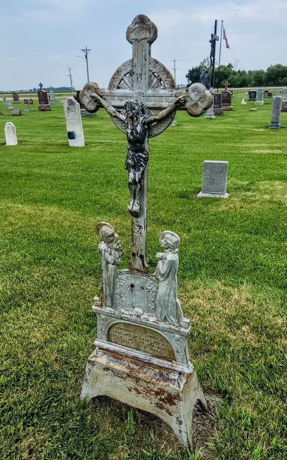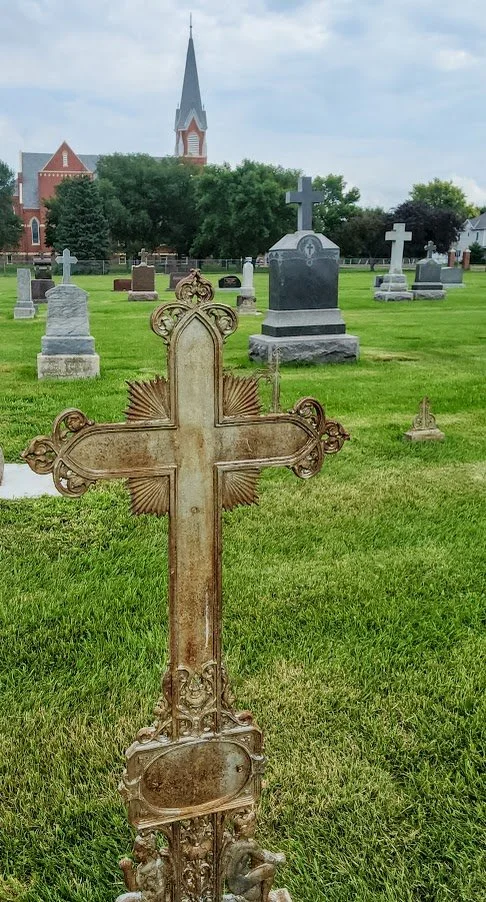 In 1878 a group of German settlers from Wisconsin moved to South Dakota and built a church in Dimock that ended up burning down in 1908. They rebuilt the church in 1909 using brick and stone with stained glass and canvas murals that was sent over from Germany. Today the Saints Peter And Paul Catholic Church stands strong and is absolutely beautiful. It reminds me a lot of the churches I have seen over in Europe. The cemetery is right next to the church and is also very pretty.