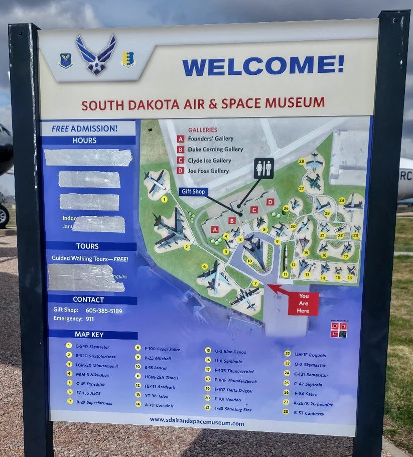 The South Dakota Air and Space Museum is located in Box Elder, South Dakota. It has an extensive collection of artifacts and documents that captures the history of Ellsworth Air Force Base, the 44th Strategic Missile Wing, and the 28th Bomb Wing throughout the Cold War. The museum is surrounded by lots of planes that can be viewed up close, and there is a museum on site that has 4 galleries of artifacts covering the history of military and civilian aerospace achievements. The museum is open year round, and admission is free. Check their website for hours.