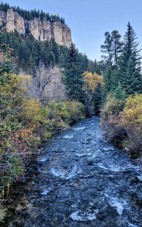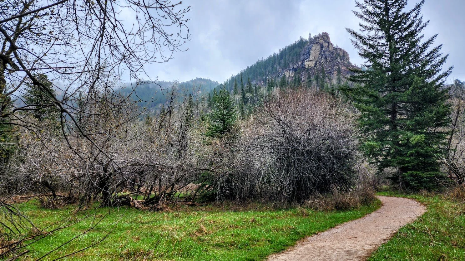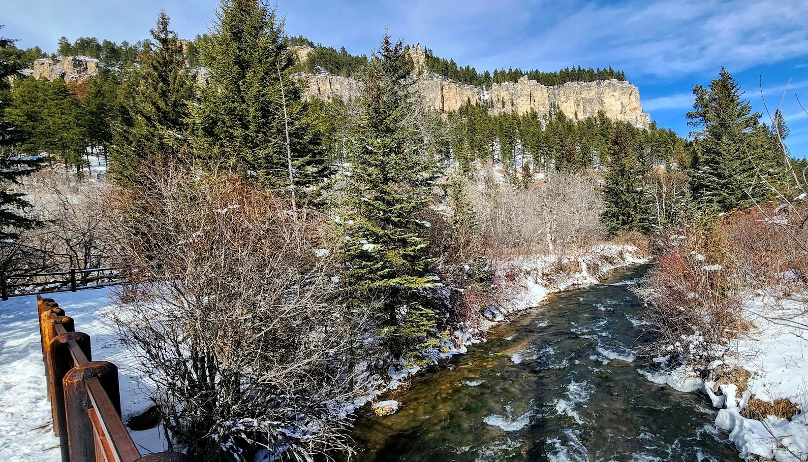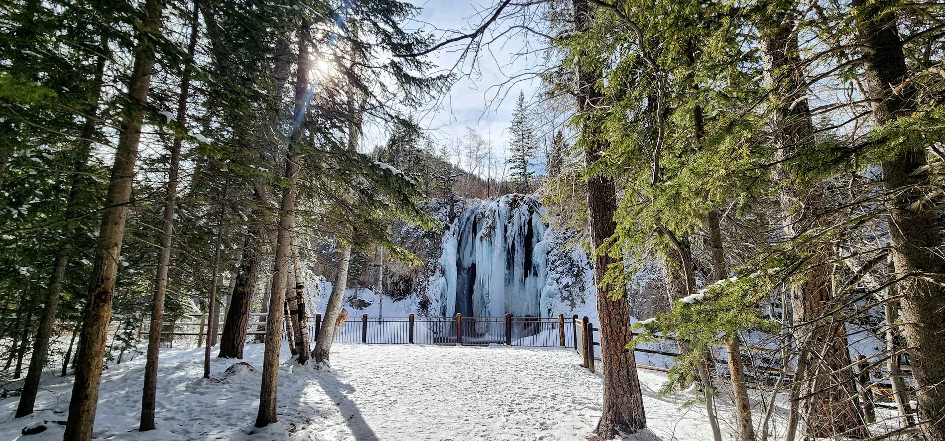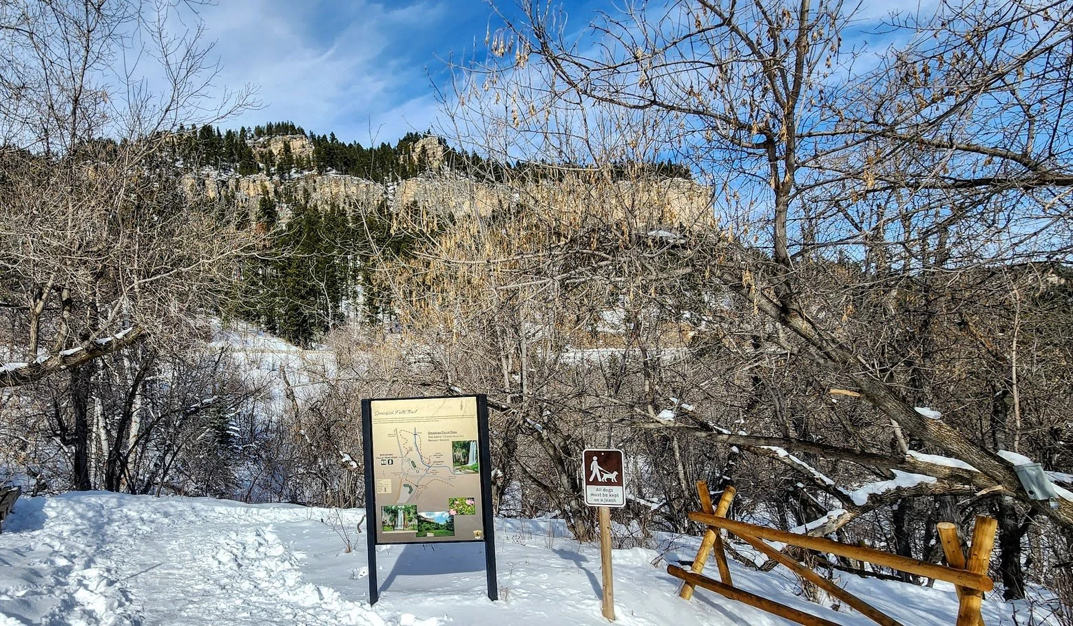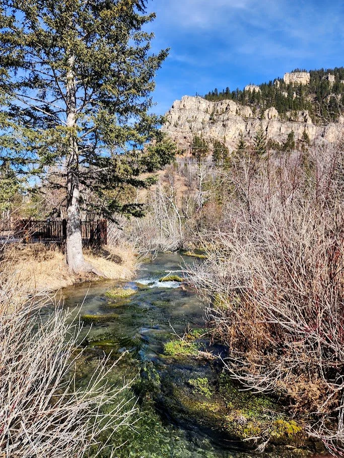 To view the falls, take the Little Spearfish Falls Nature Trail which is found behind the Latchstring Inn in Spearfish Canyon. The trail is 3/4 of a mile out and back that descends a little over 100 feet. This trail is handicap accessible and open year round.