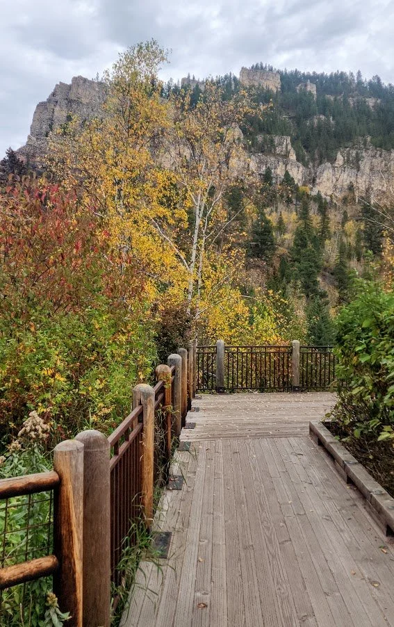 In the summertime the flowers along the trail are beautiful and during the fall, visitors come from all over the world to view the falls and the colors of the canyon.