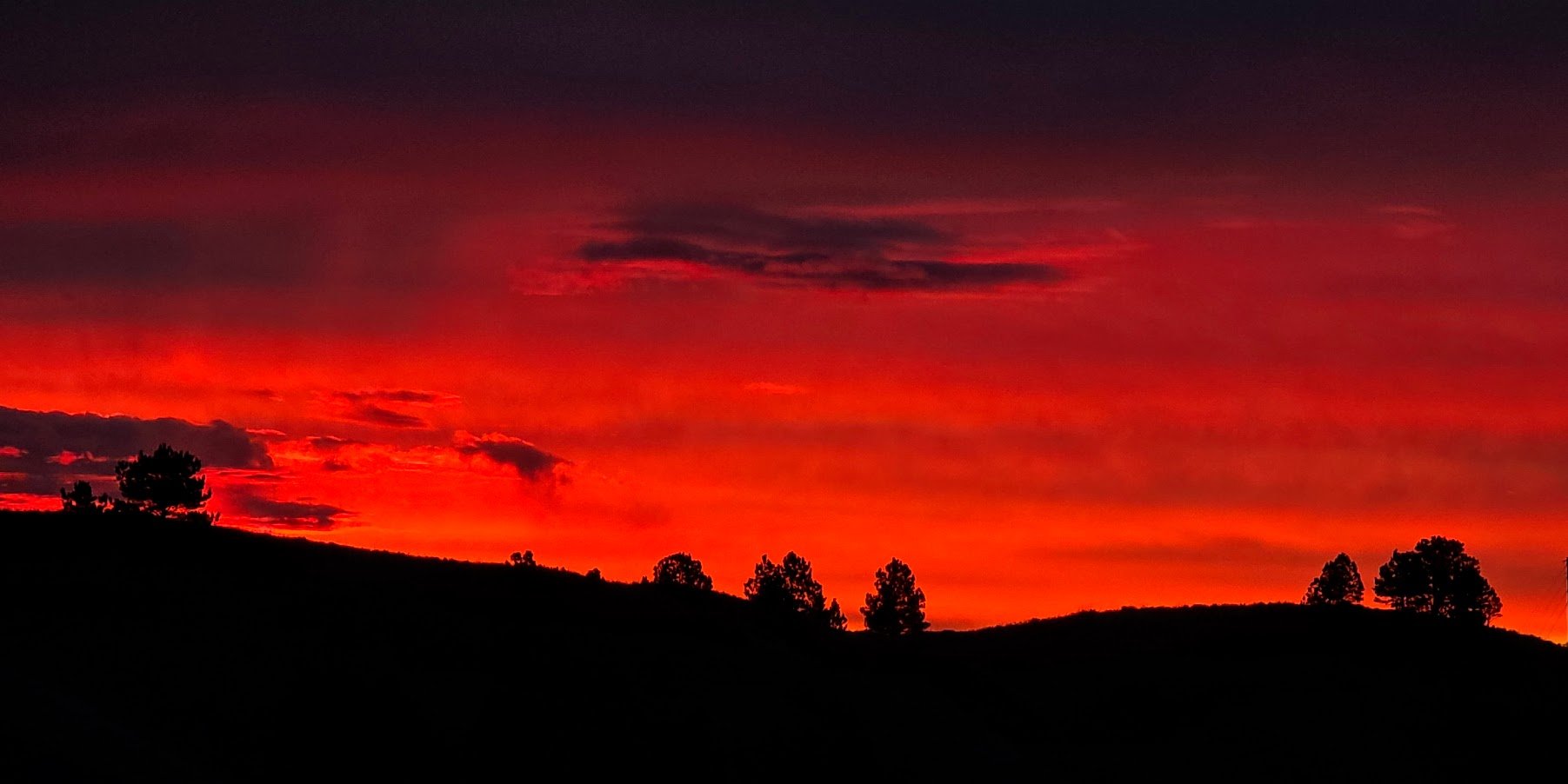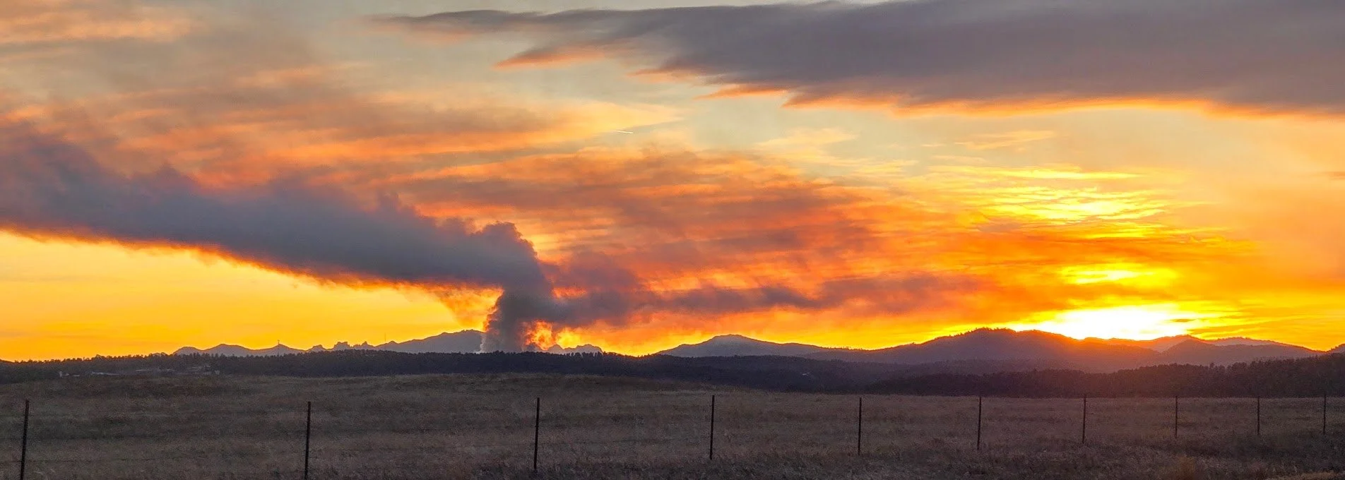 Silver Mountain Road fire near Rockerville, South Dakota and sunset.