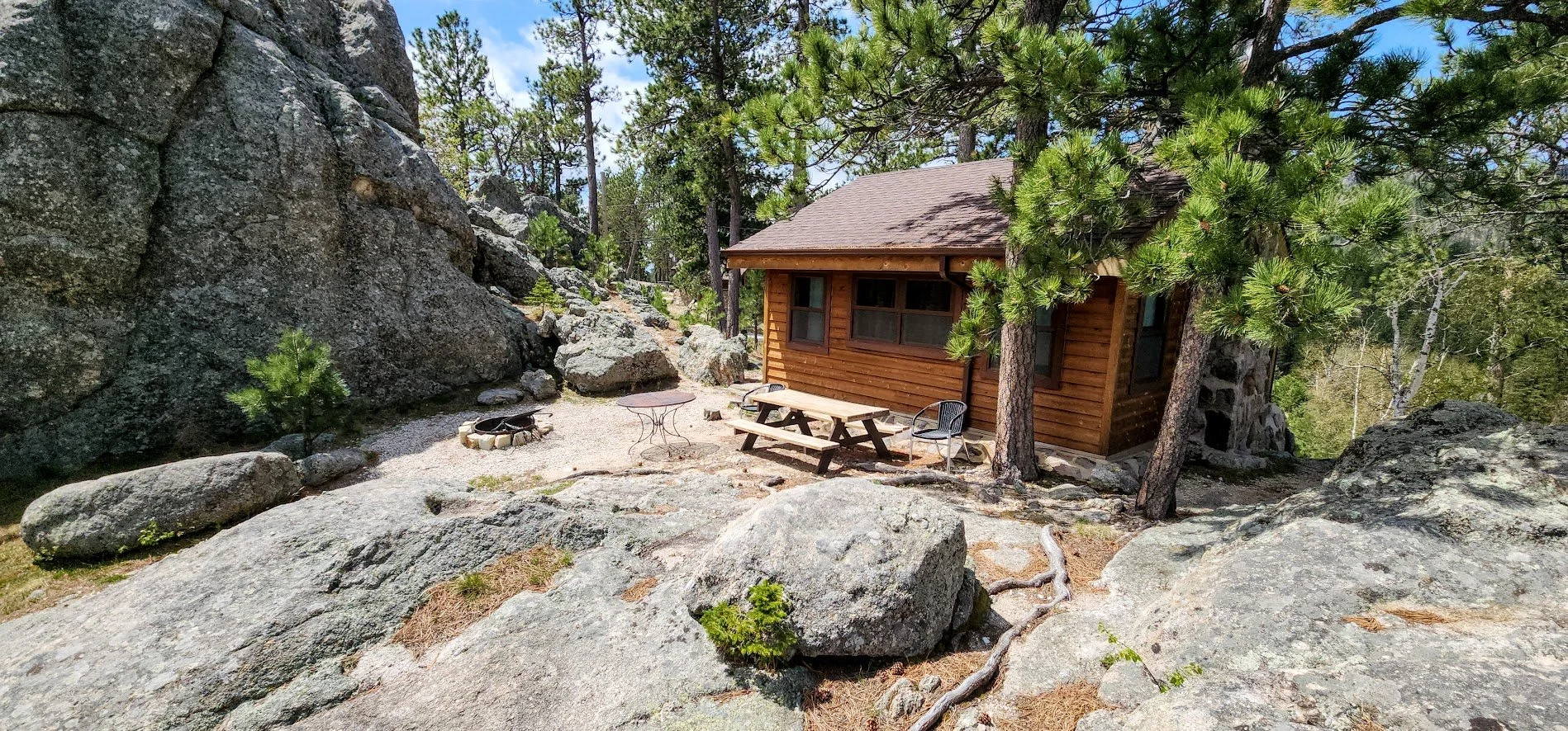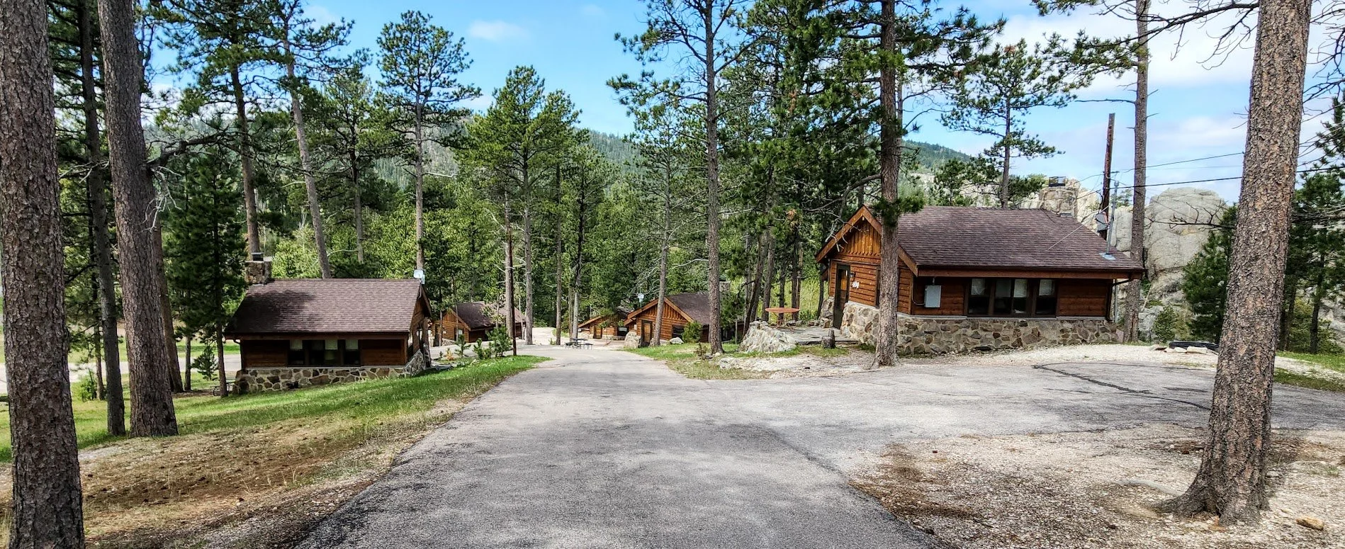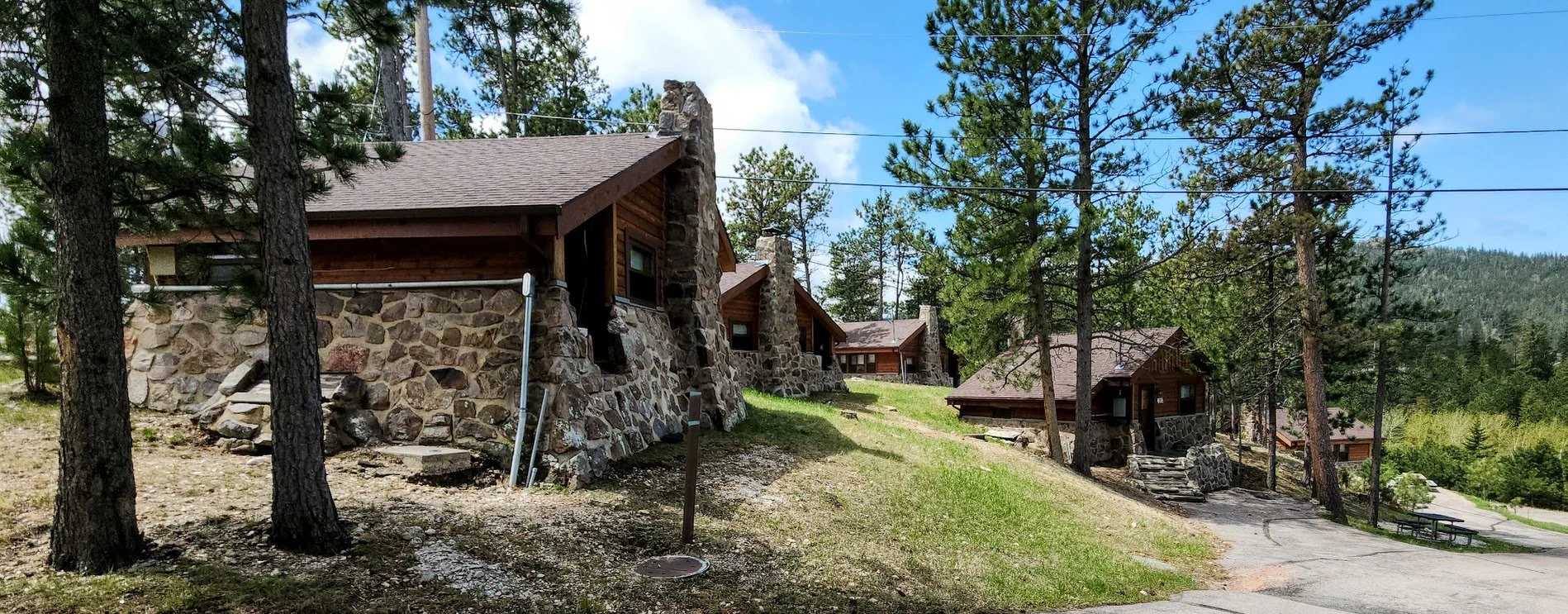 Sylvan Lake Lodge is located in Custer State Park right next to Sylvan Lake. The lodge was built in 1937 and new lodge rooms were added in 1991. Along with the lodge there are 31 cabins, a general store, restaurant, wedding venue, meeting rooms, a campground, and a lounge. Everything is usually open May through October. Below the lodge and cabins is Sylvan Lake which consists of 17 acres of water, and the starting point for many hikes and great adventures.