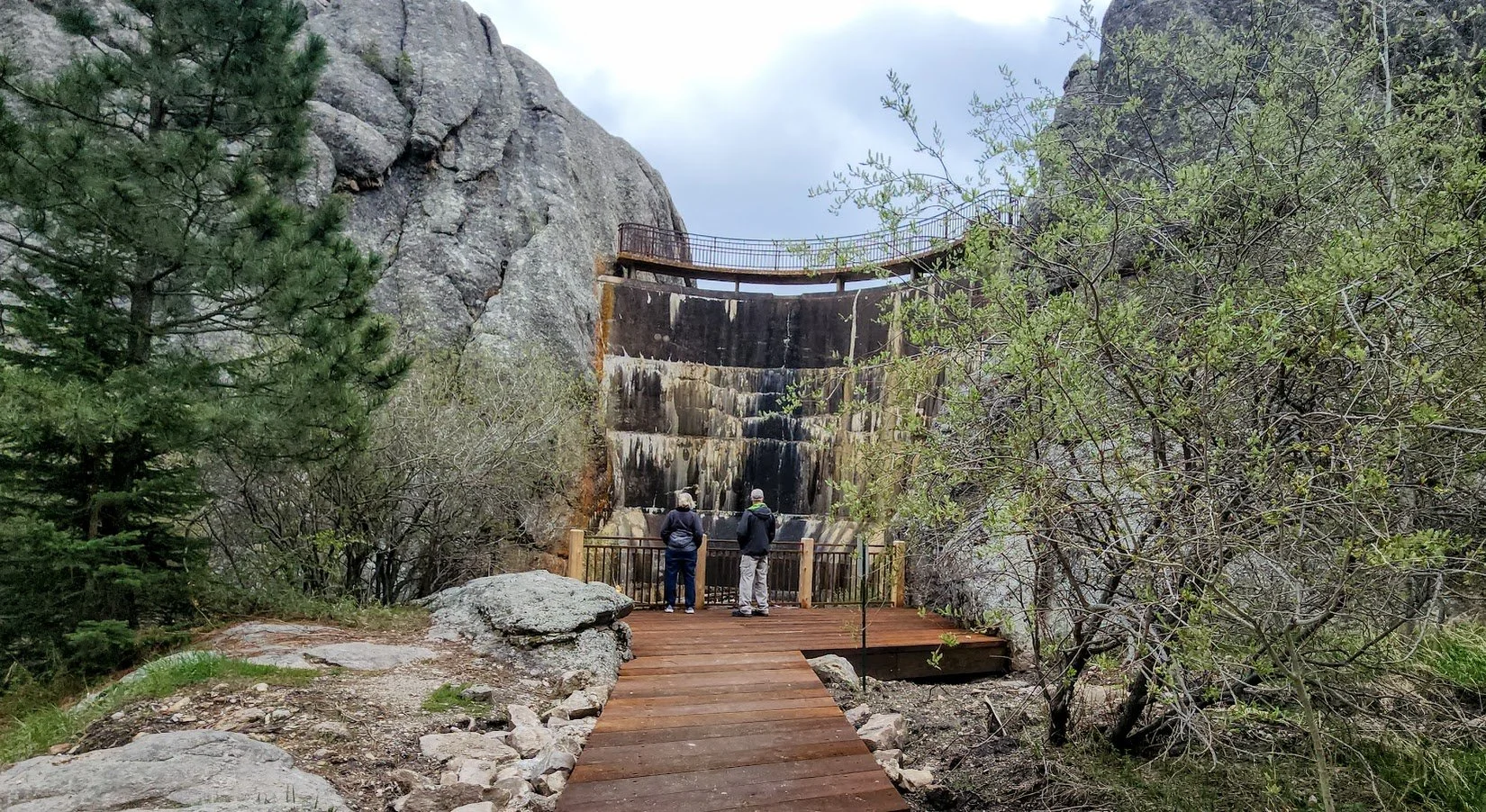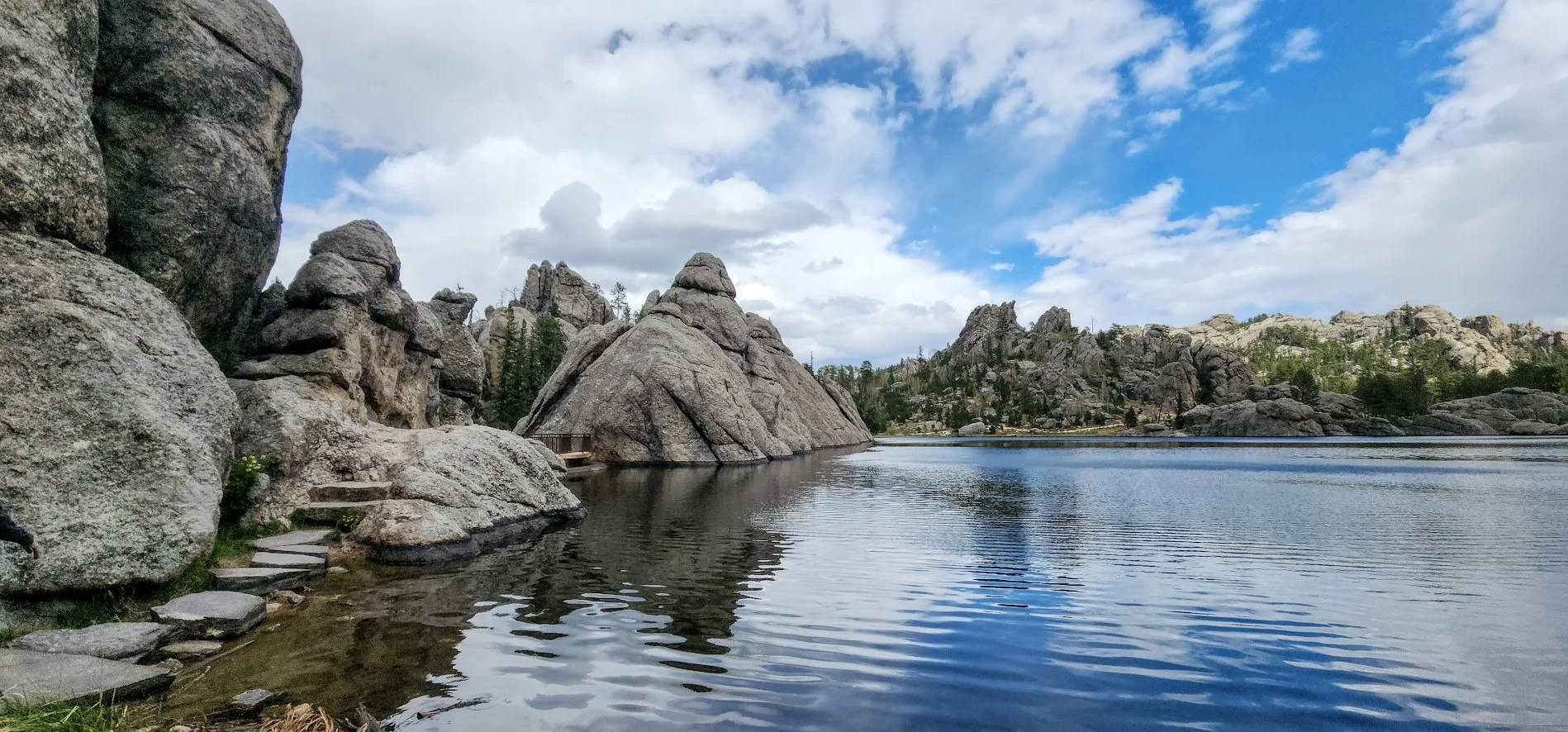 Sylvan Lake Shore Trail is a 1 mile hike that goes around the lake. Some parts of it are handicapped accessible. The trail at times goes up slight boulders and stairs and through a cool tunnel. You can also walk on some rocks to get to the top of the dam. Take some time and climb the boulders in the area and get a great view of the lake.