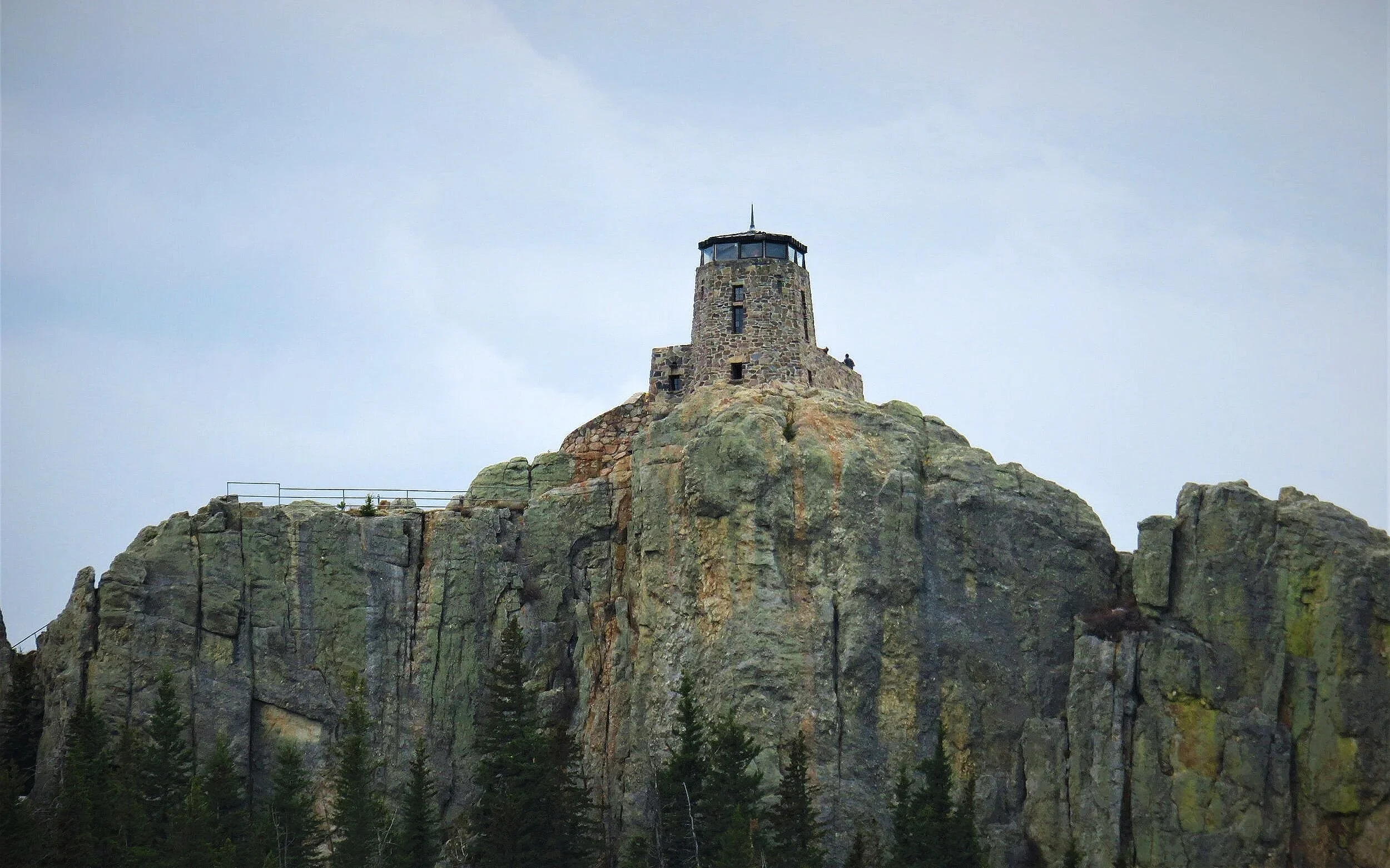 Hike up to the top of Black Elk Peak, formerly known as Harney Peak, the highest peak east of the Rockies in America at 7242 feet. American settlers used Black Elk Peak as a fire lookout tower in 1911, with a wood crate placed at the summit for a seat. The stone fire tower that stands atop the peak today was completed in 1938 and was last staffed in 1967.