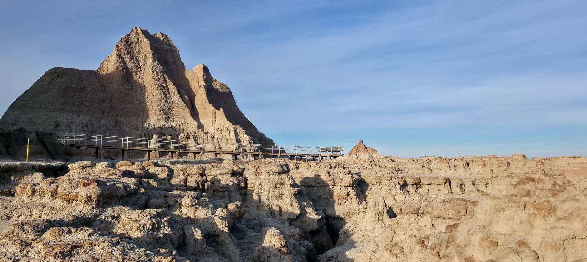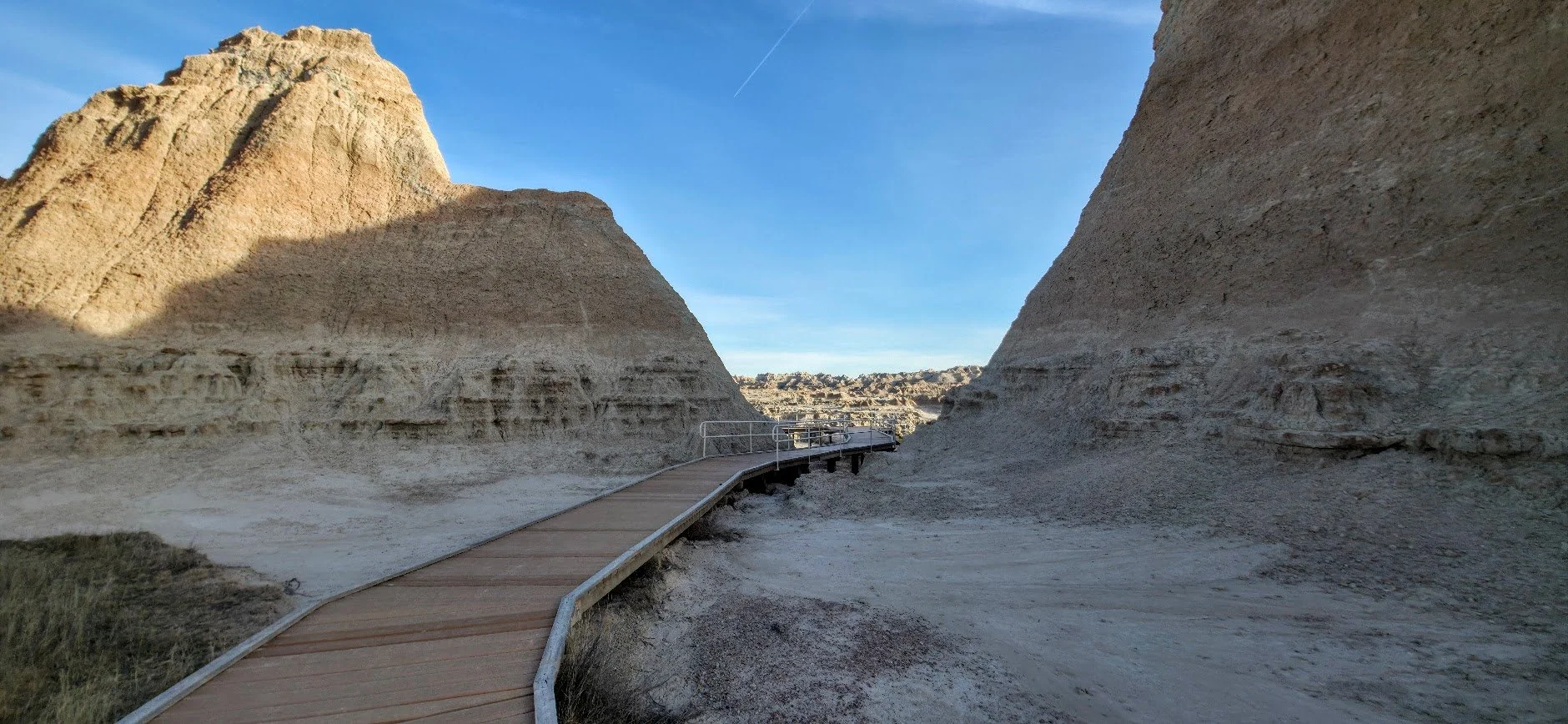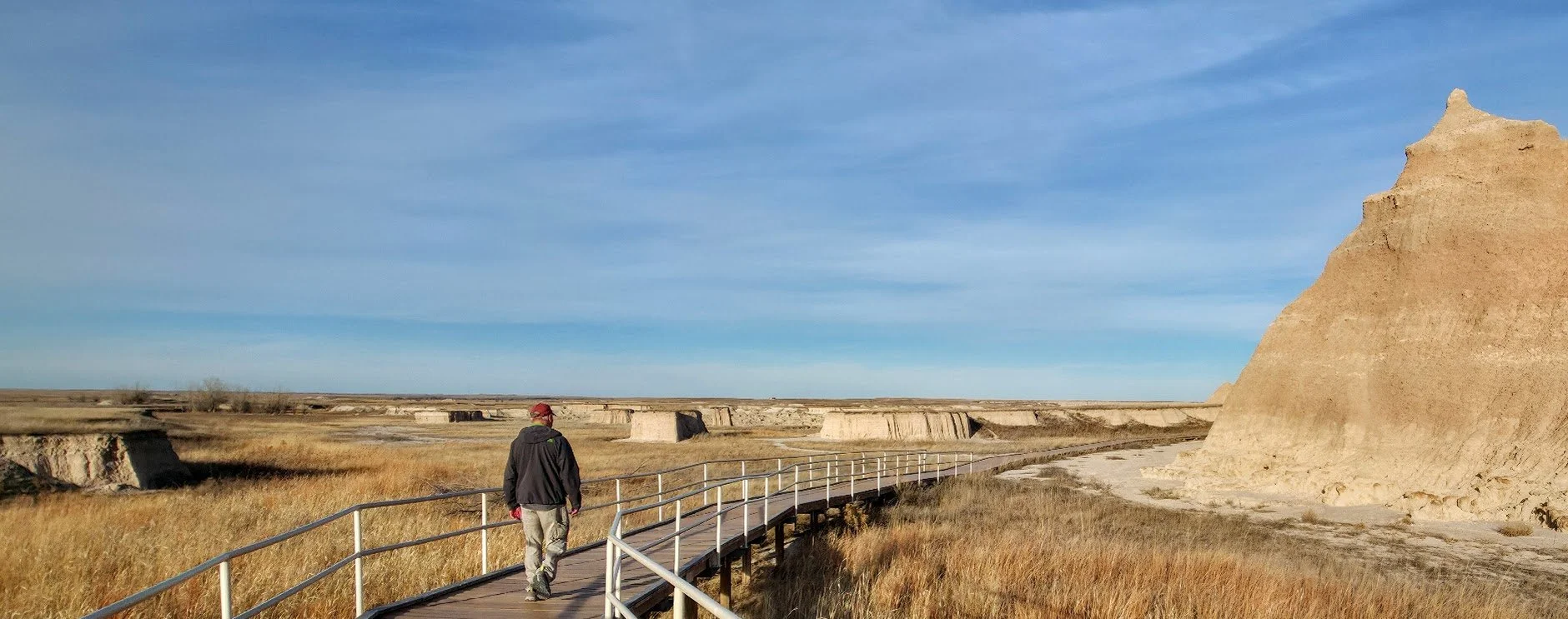 The Door Trail is a 0.9 mile out and back trail located in the Badlands near the east side of the Park coming in off of mile marker 131 I-90. This trail is great for the kids because while the parents can walk on the path, younger kids can climb small buttes and pinnacles. This trail is not handicapped accessible once you leave the platform and it can be as hard as you make it. There is no shade so this trail can get very hot very quickly.
