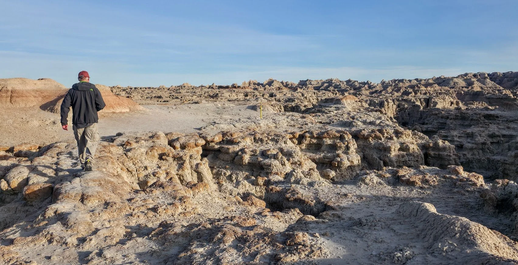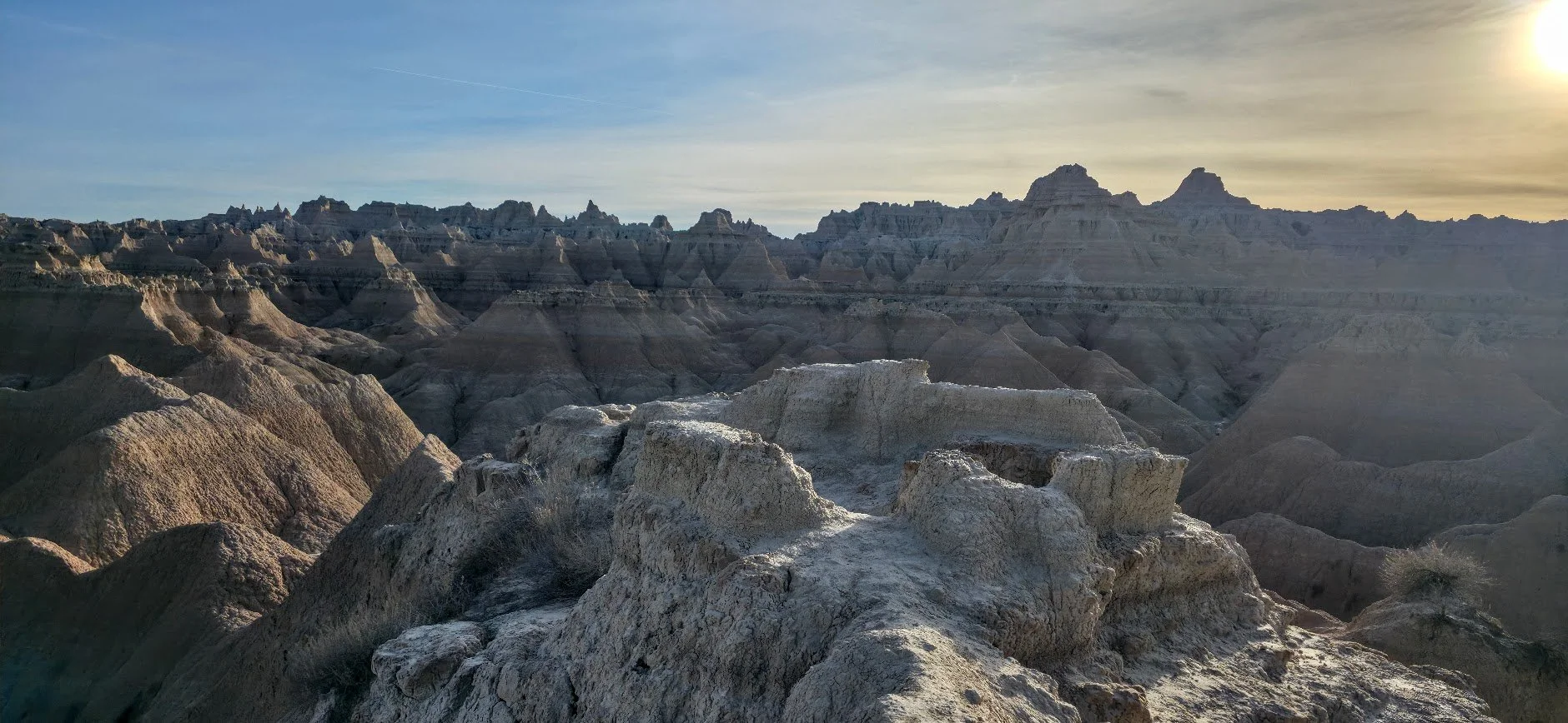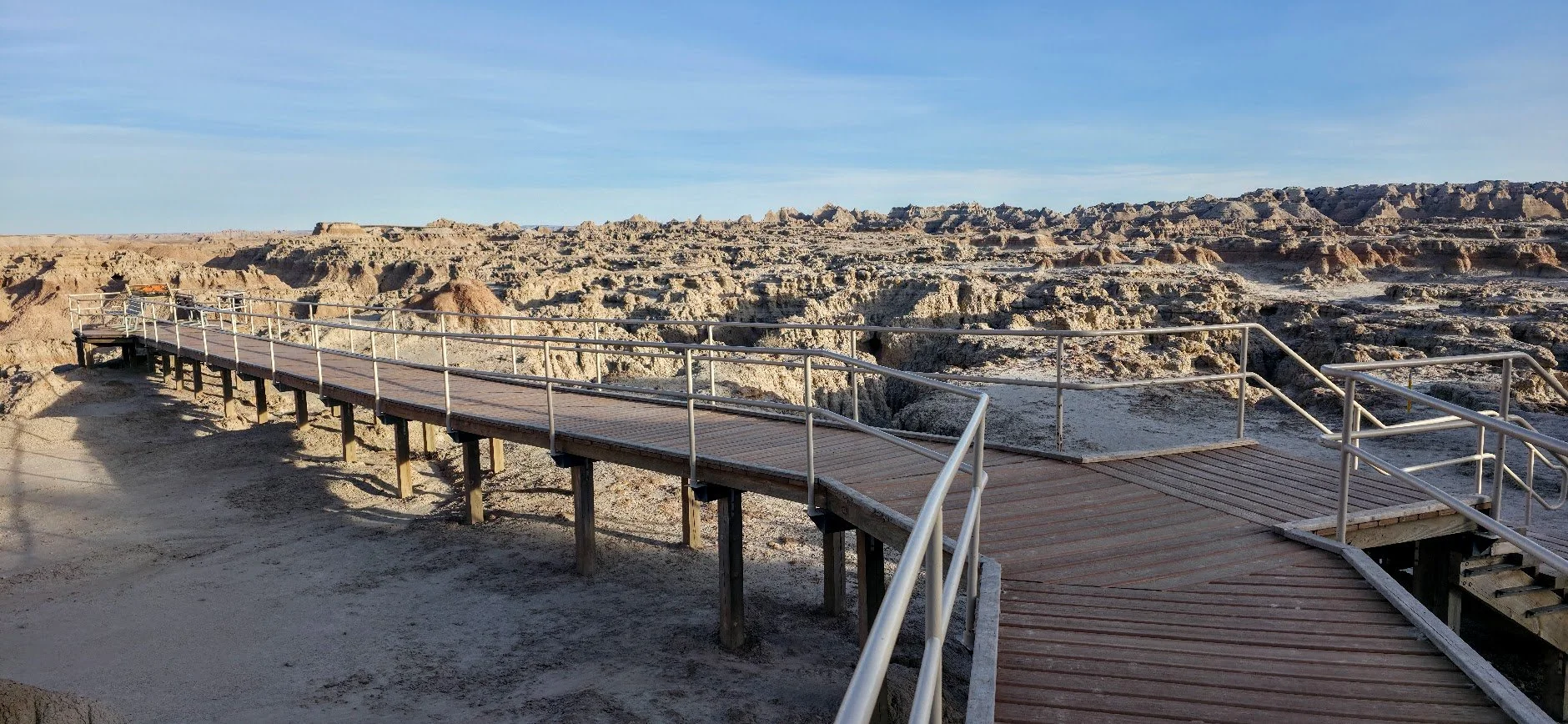 The Door Trail is a 0.9 mile out and back trail located in the Badlands near the east side of the Park coming in off of mile marker 131 I-90. This trail is great for the kids because while the parents can walk on the path, younger kids can climb small buttes and pinnacles. This trail is not handicapped accessible once you leave the platform and it can be as hard as you make it. There is no shade so this trail can get very hot very quickly.