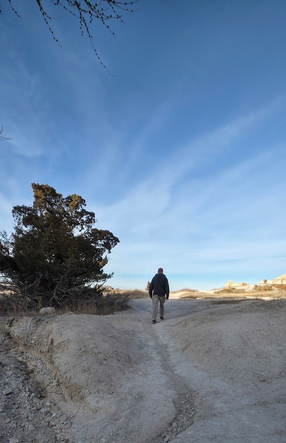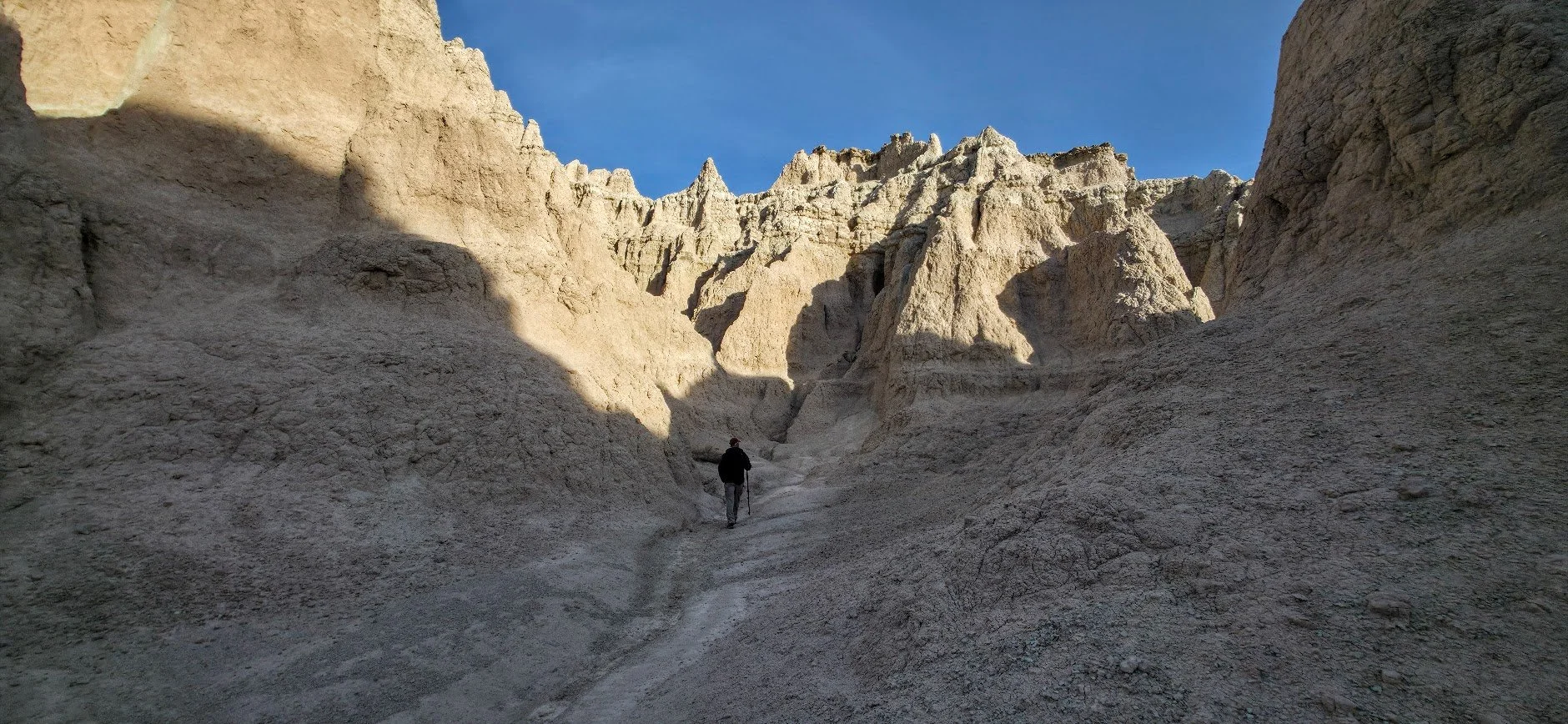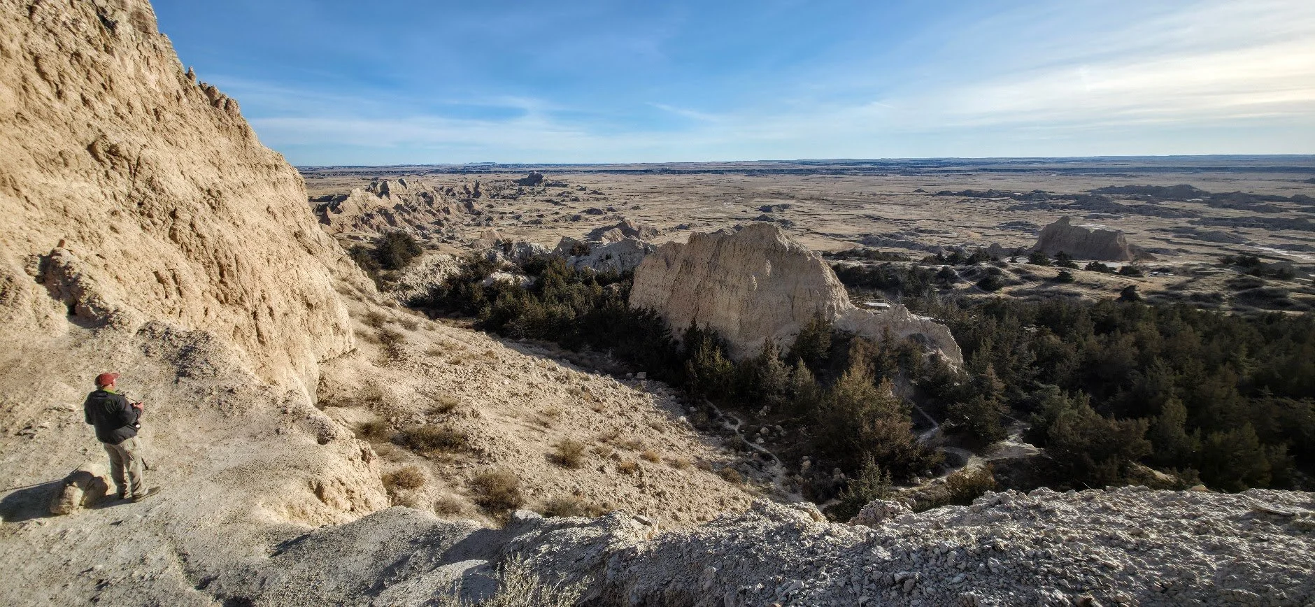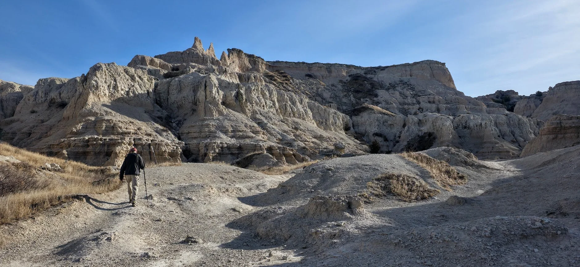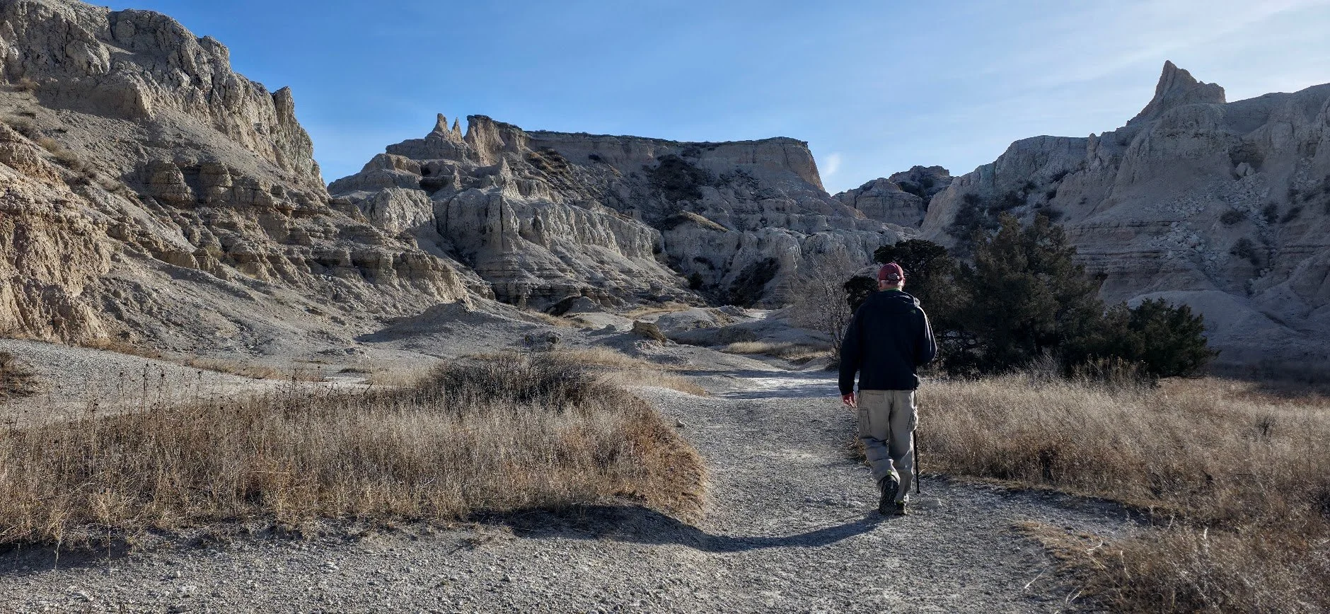 Hiking along the top of the Notch Trail in the Badlands - Can get very hot in the summer.