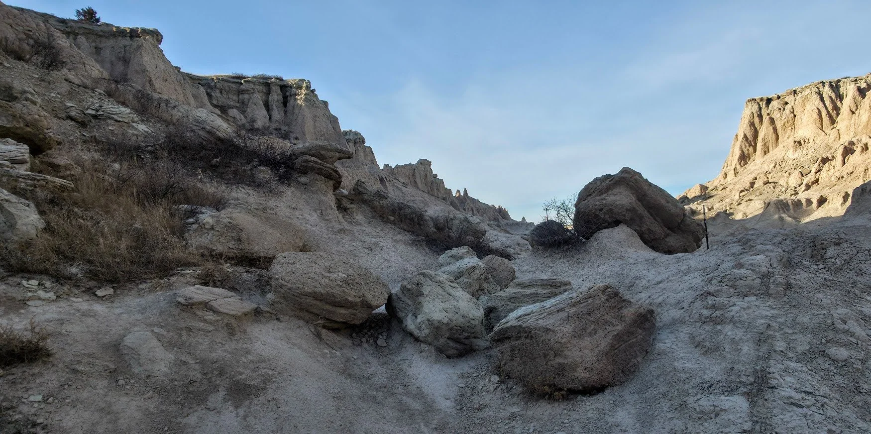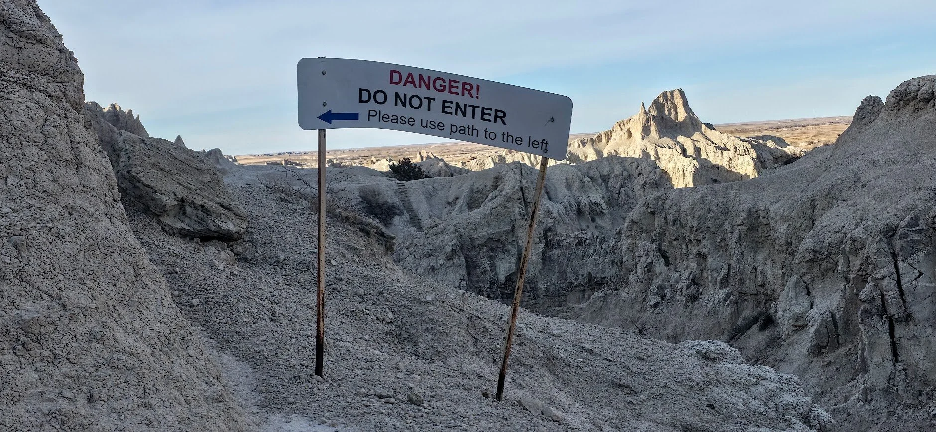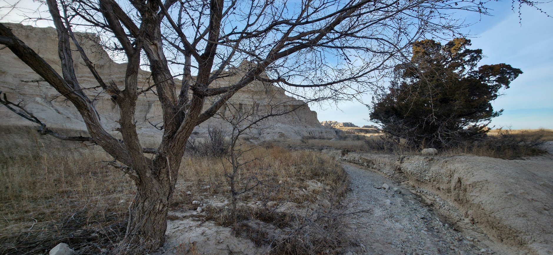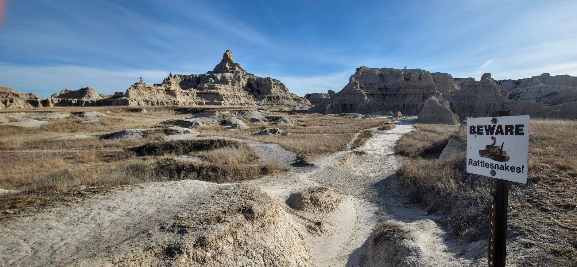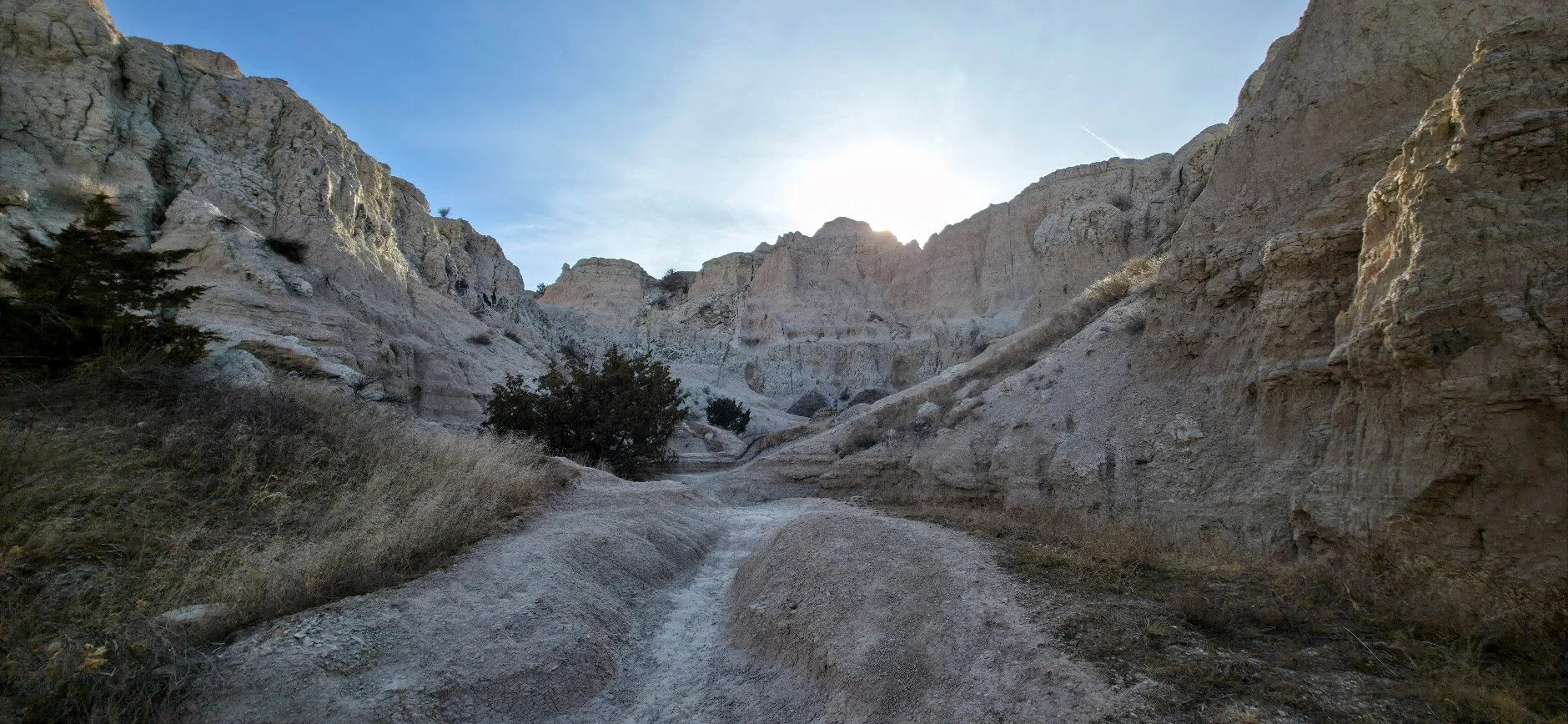 Hiking along the top of the Notch Trail in the Badlands - Can get very hot in the summer.