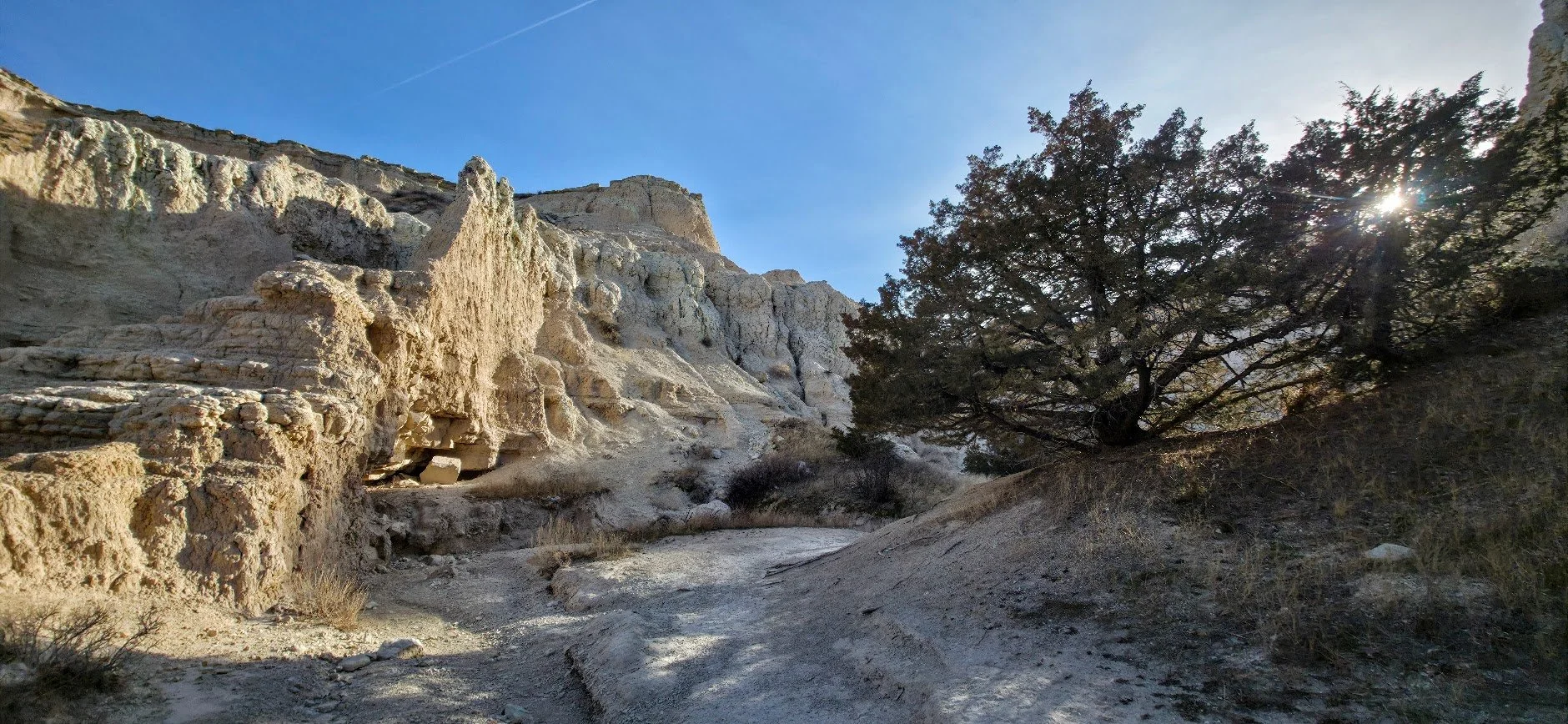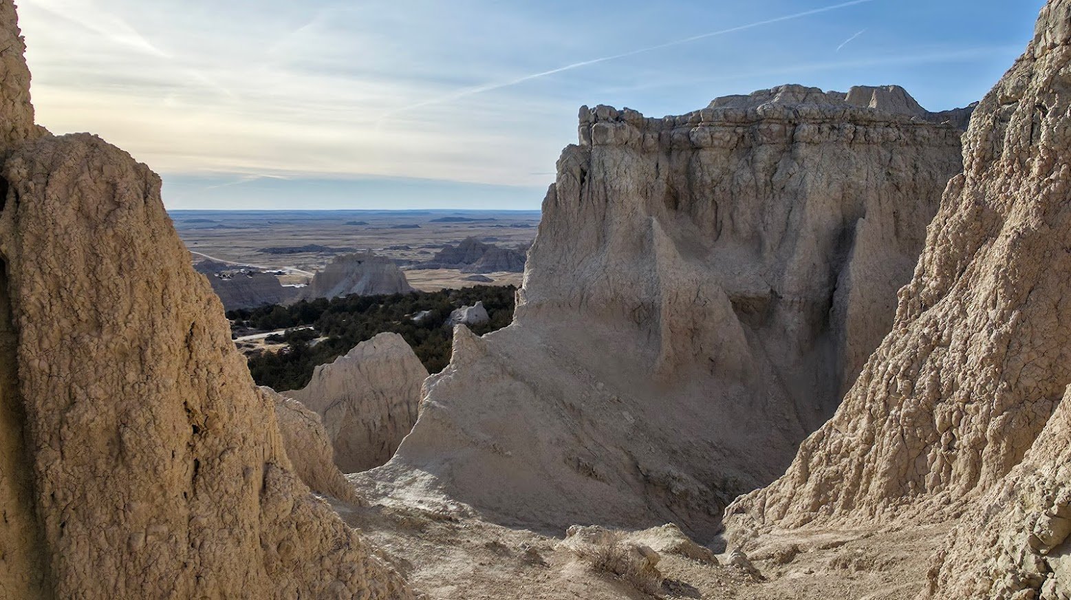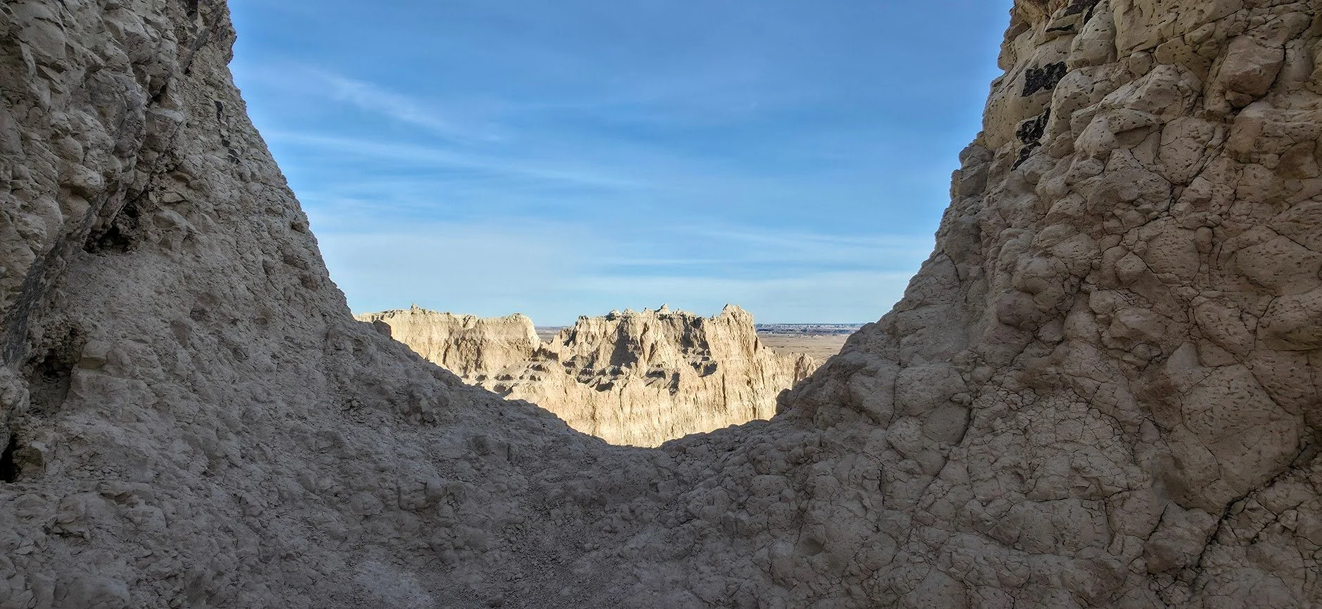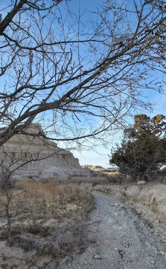 The Notch Trail in Badlands National Park in South Dakota is a very neat trail and not for the faint of heart. You get to climb a rope ladder - very scary for some people and the trail is close to cliffs at times. The trail is 1.3 miles out and back round trip, and it ends at a window that faces to the south and gives you a view of the valley below. The hike is a must for those who like a little adventure. This is a fun hike for kids, but you need to use caution.