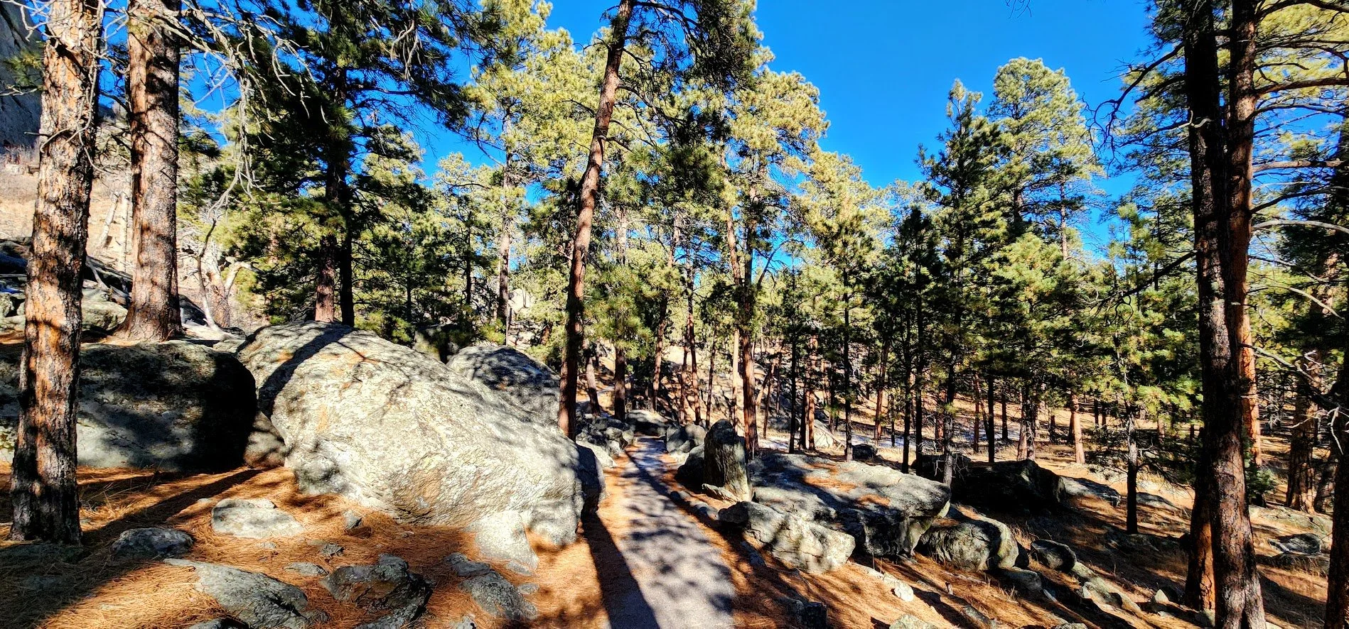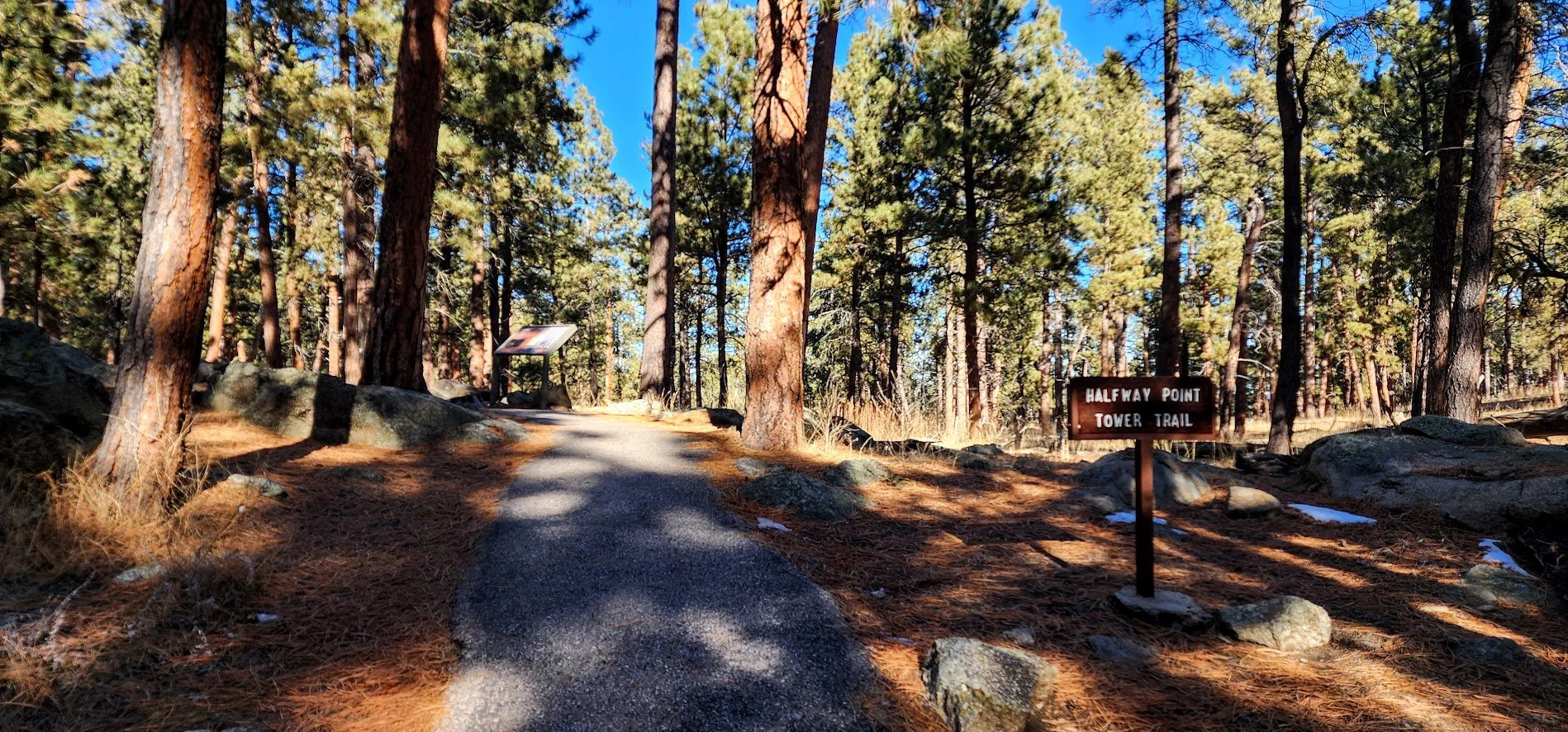 This is the most popular hike in the park and is an easy paved 1.6 mile trail that goes around the tower. It starts at the parking area near the visitor center. There are benches along the way to sit down and enjoy the beauty, lots of informative displays, and a lot of boulders along the trail for little kids to play on and enjoy exploring.