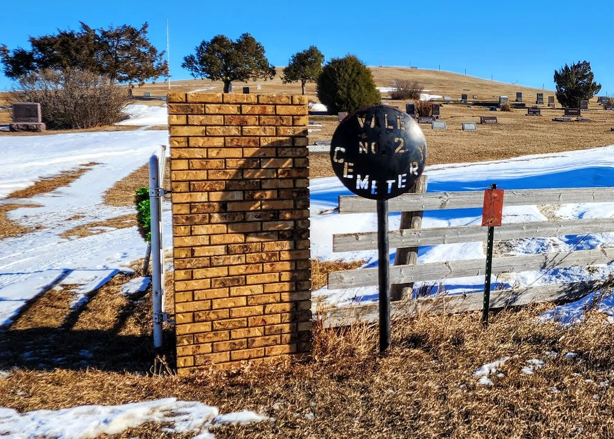 Vale #2 Cemetery is located in the town of Vale, South Dakota just east of Highway 79. The cemetery dates back to the early 1900s and there are a lot of young babies and children buried here. The cemetery is still open for burial today and you can see Bear Butte in the distance adding to the scenery.