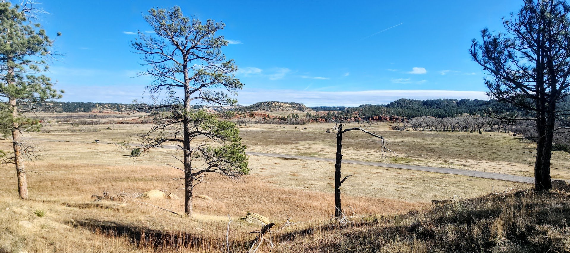The Valley View Trail runs between the Red Beds Trail and the South Side Trail. It is only .06 miles long. The trail follows alongside the Prairie Dog Town and the Belle Fourche River. The trail is flat and easy and is only really used by campers that want to hike directly to the South Side Trail to get to the Red Beds Trail.