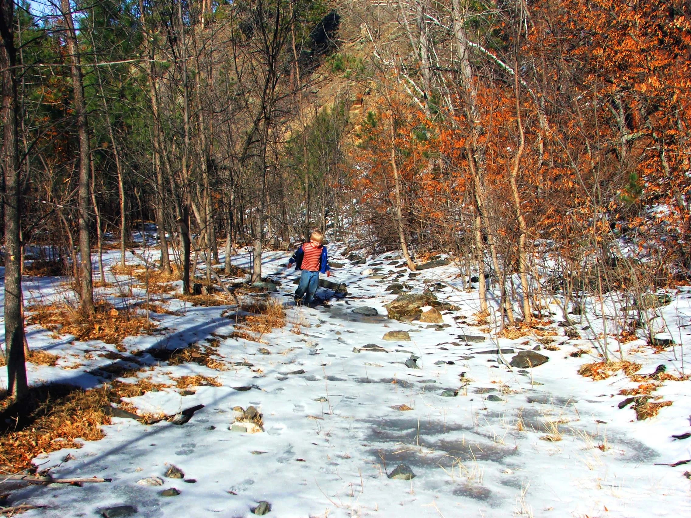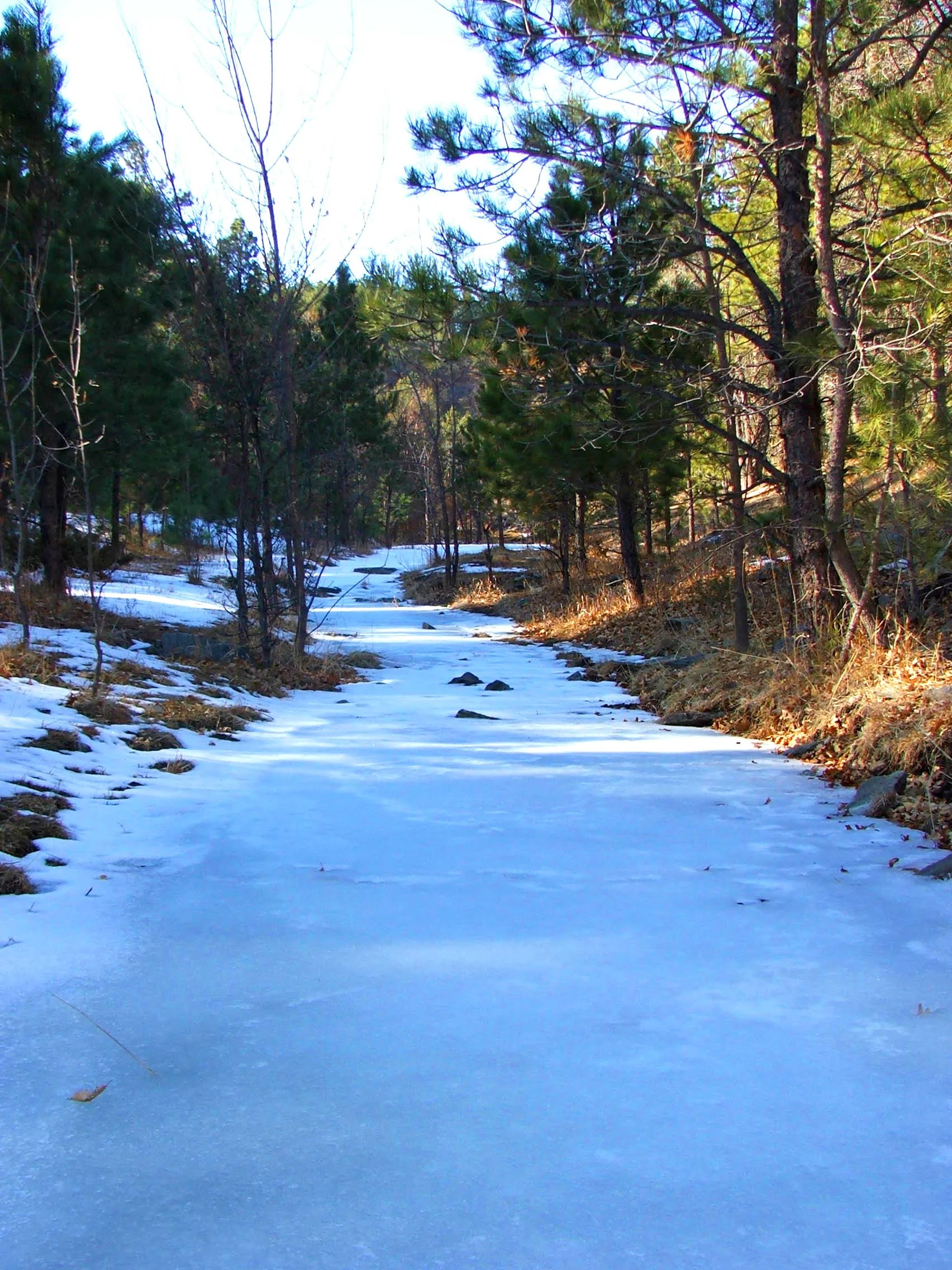 Victoria Lake Trail is a beautiful trail that is just west of Rapid City. It is fun anytime of the year and goes through a canyon which follows a stream. During the spring it can be running pretty good so prepare to get wet since you need to cross the stream several times. In the fall the trees are gorgeous. In the winter it is fun to run along the trail and play on the ice. This was a local favorite for my kids when they were small because the trail was flat, the stream was fun to play in, and the views are pretty.