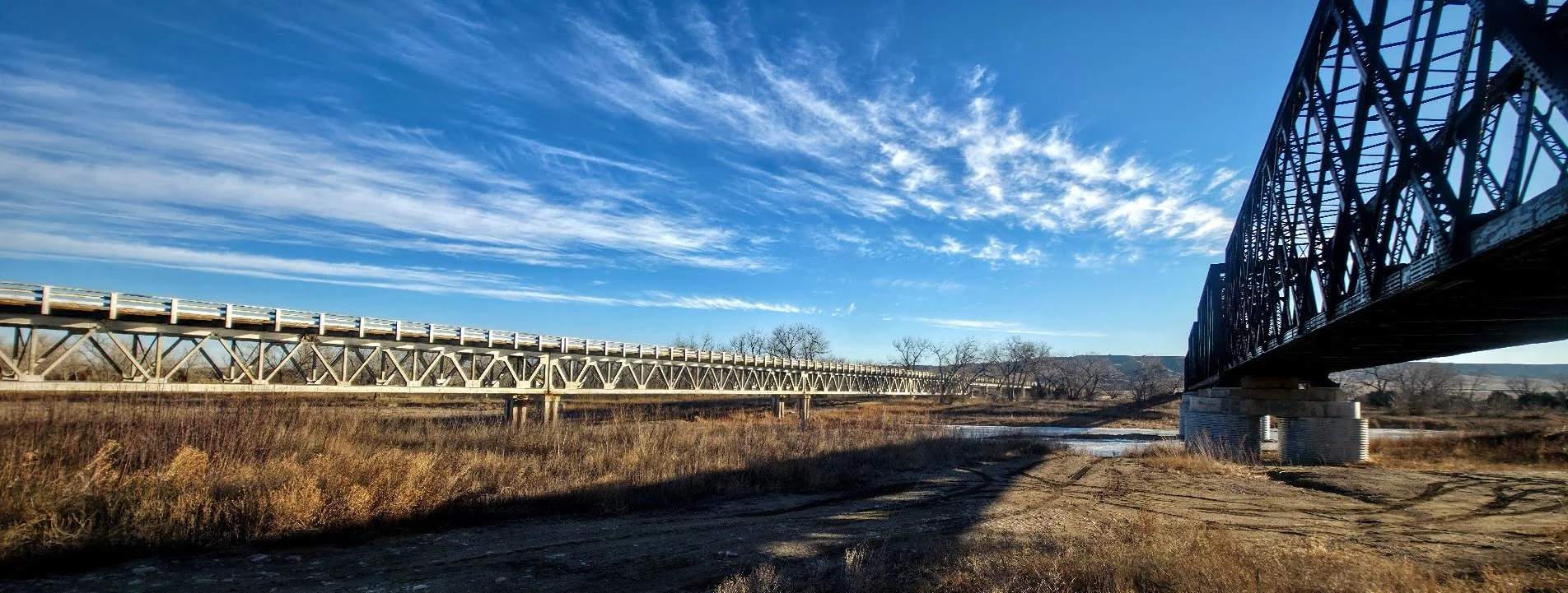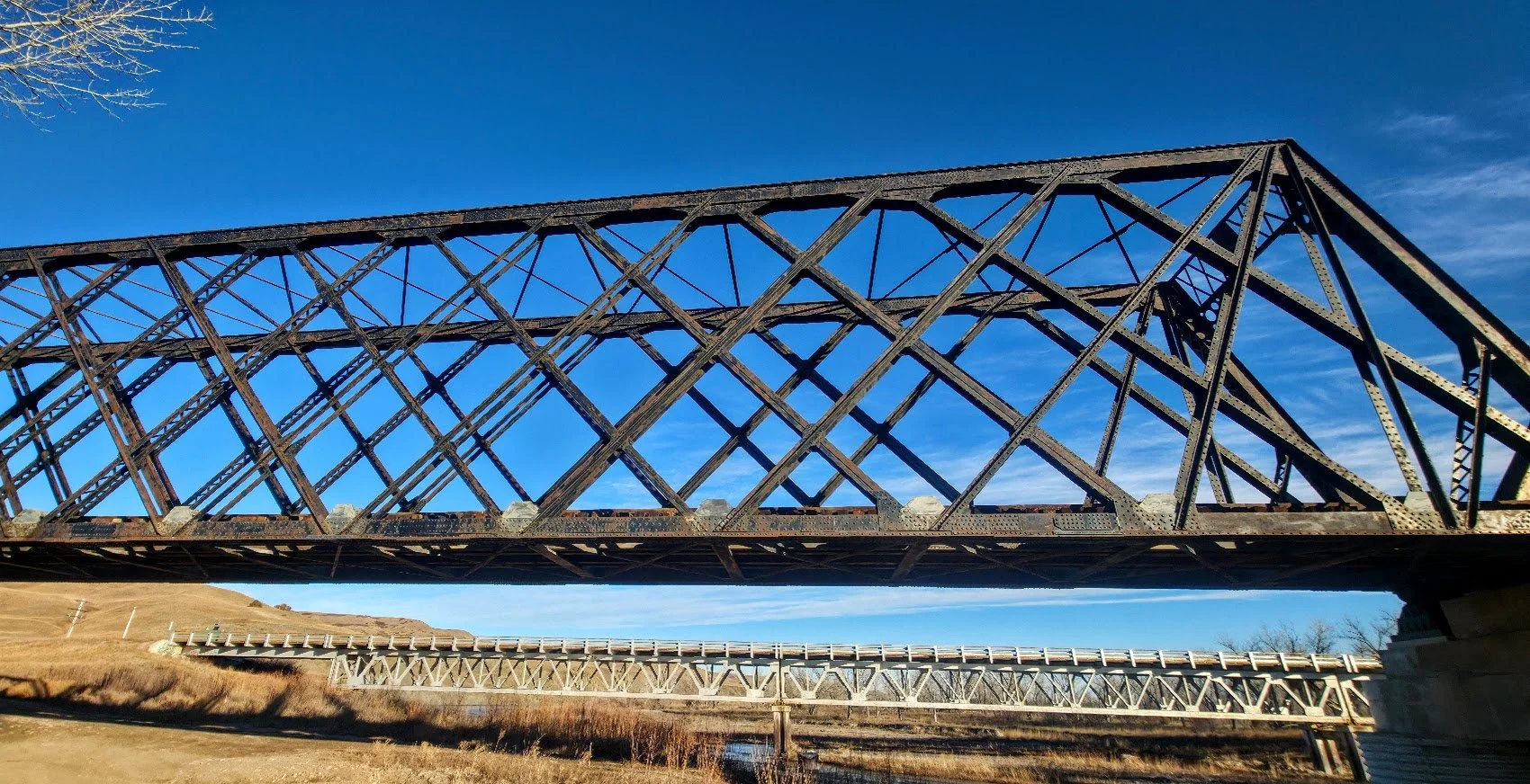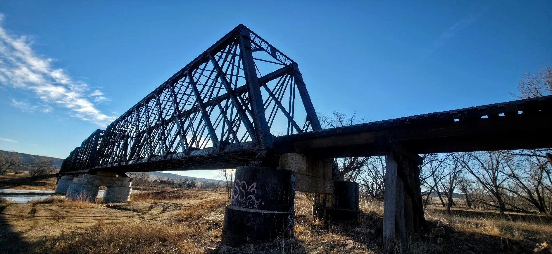 The Wasta Rail Bridge is in the town of Wasta, South Dakota on Highway 1416 just east of town. The bridge is unique due to its relocation history on the spans of the bridge. Railroads back in the days believed in relocating bridges from main lines to branch lines as a way to recycle. Part of this bridge came from Winona, Minnesota. The bridge also consists of 2 types of through trusses - including quadrangular and warren spans. This bridge was constructed in the 1920s.