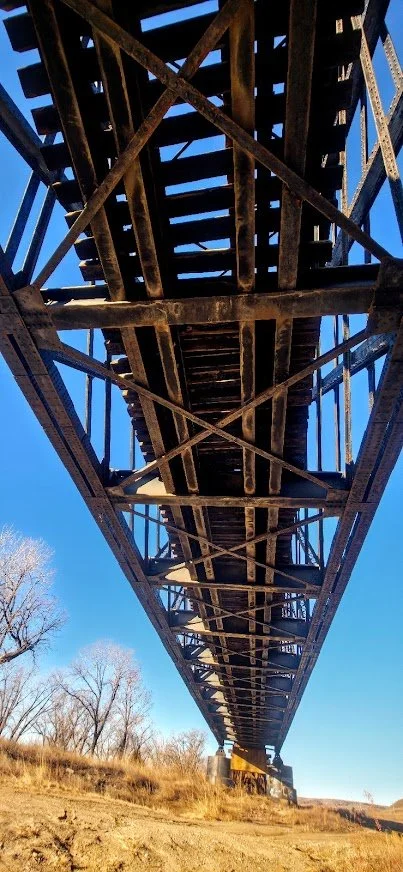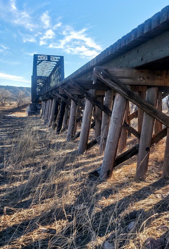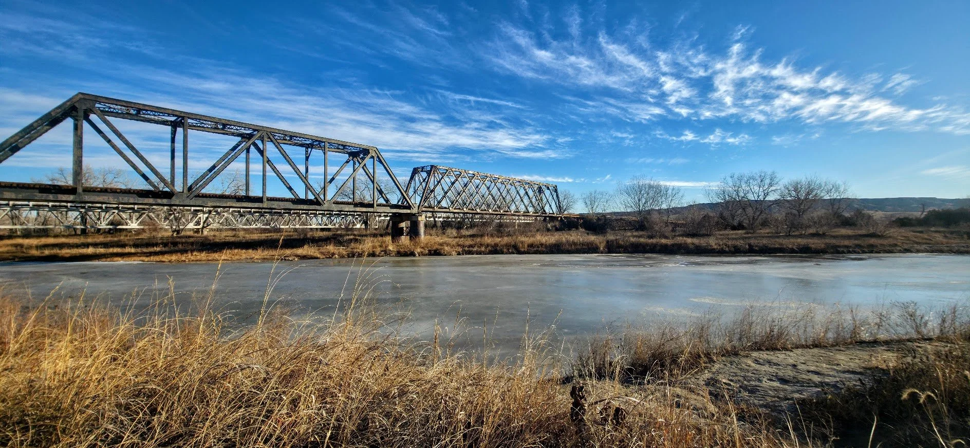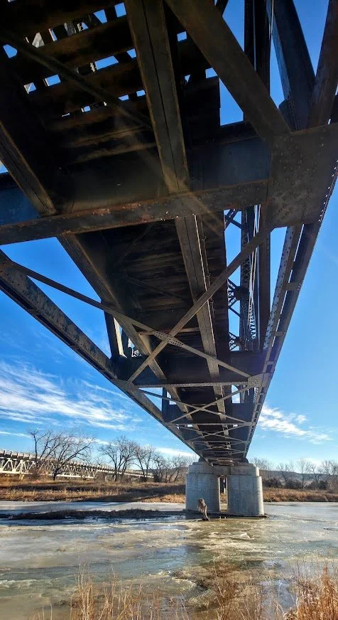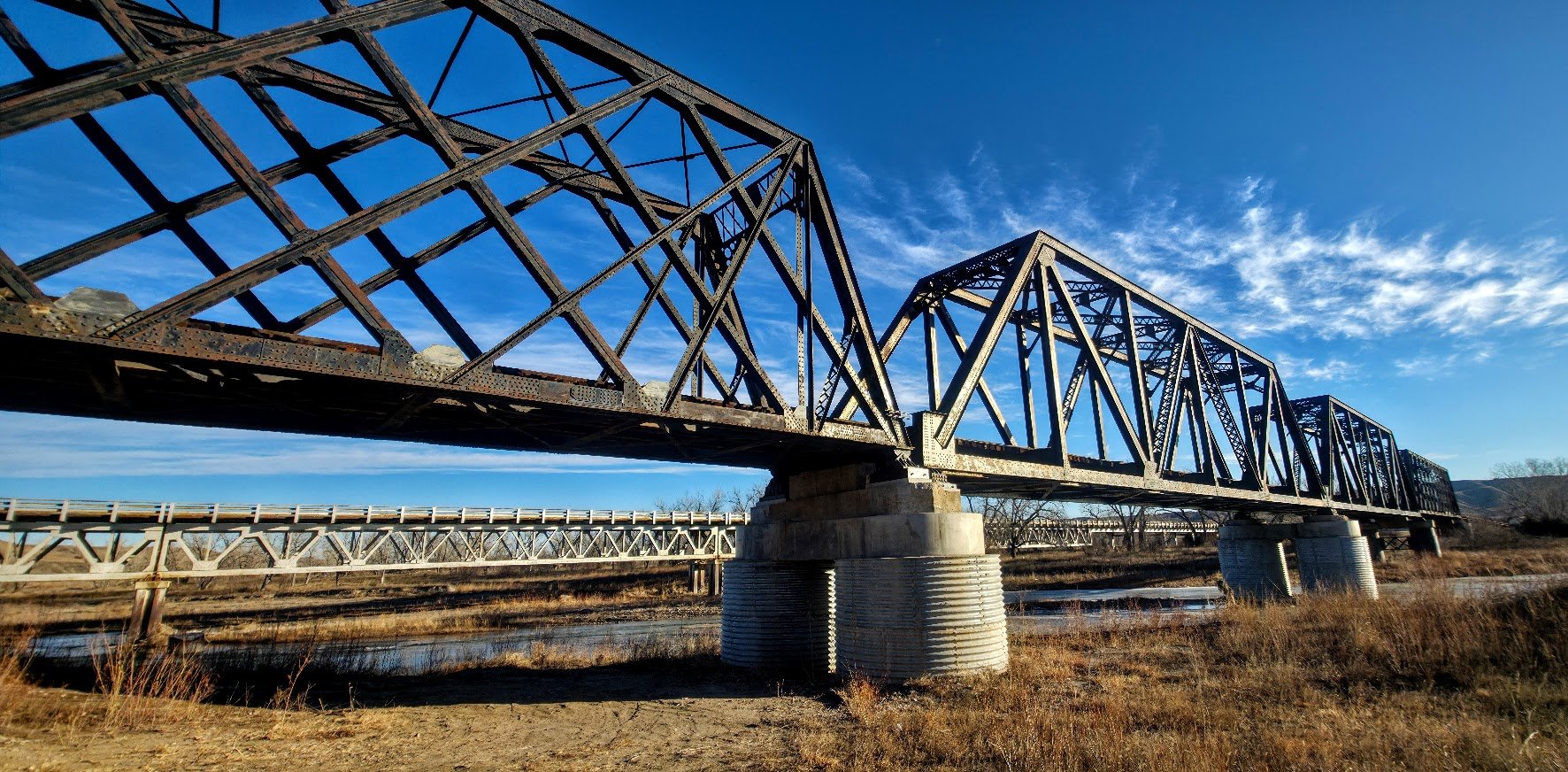 The Wasta Rail Bridge is in the town of Wasta, South Dakota on Highway 1416 just east of town. The bridge is unique due to its relocation history on the spans of the bridge. Railroads back in the days believed in relocating bridges from main lines to branch lines as a way to recycle. Part of this bridge came from Winona, Minnesota. The bridge also consists of 2 types of through trusses - including quadrangular and warren spans. This bridge was constructed in the 1920s.
