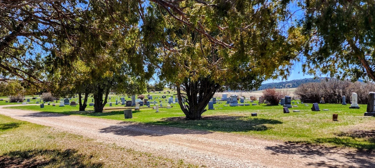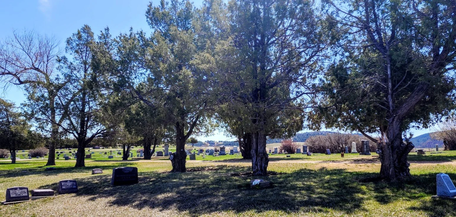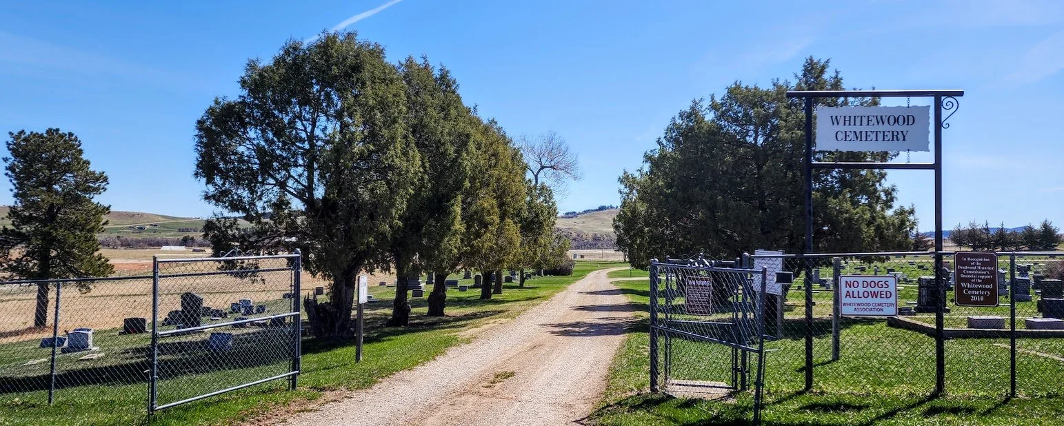 The Whitewood Cemetery is a large cemetery in the town of Whitewood. There are a lot of older graves there and the cemetery has a pretty backdrop of the Black Hills.