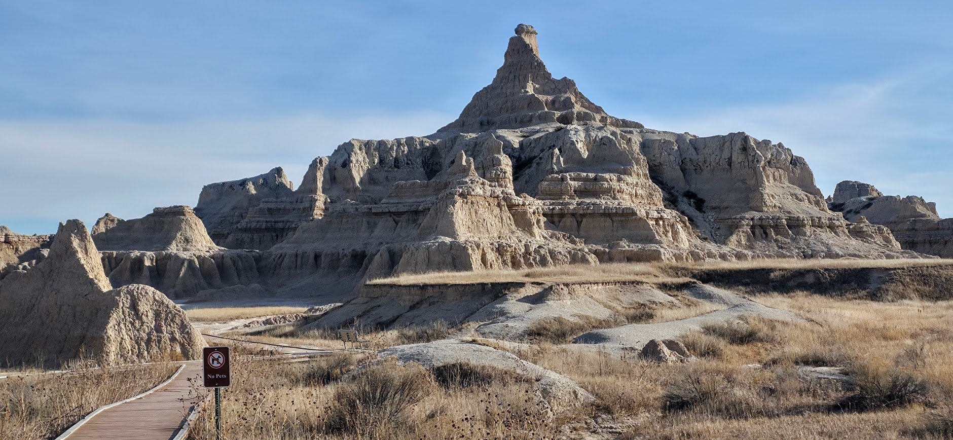 The Window Trail is a 0.2 mile easy out and back trail that is handicapped accessible and takes you to an opening “window” in the Badlands. The trail starts at the parking lot and can be hiked in about 5 minutes. There are benches at the end of the trail if you want to just sit and enjoy the view.