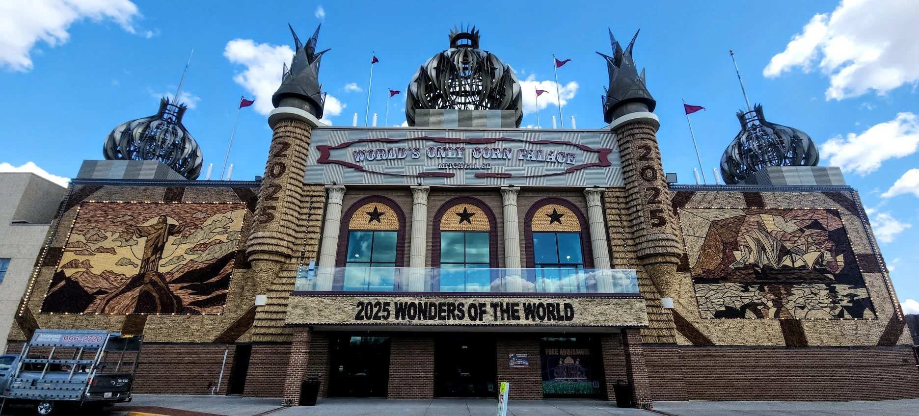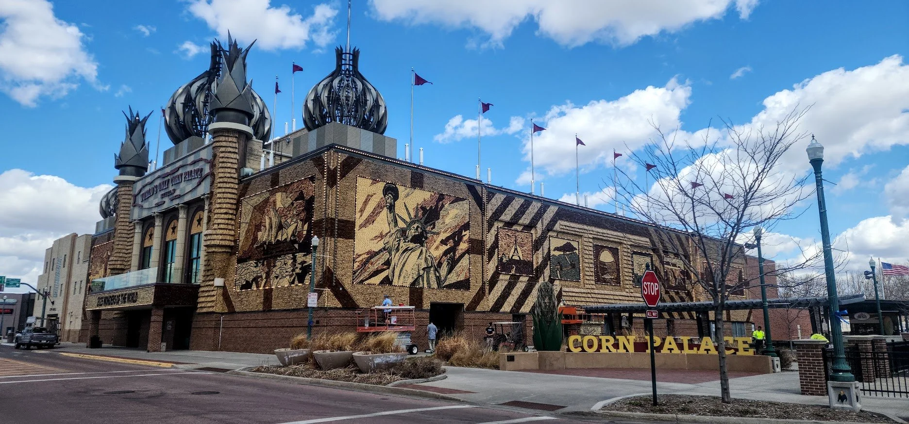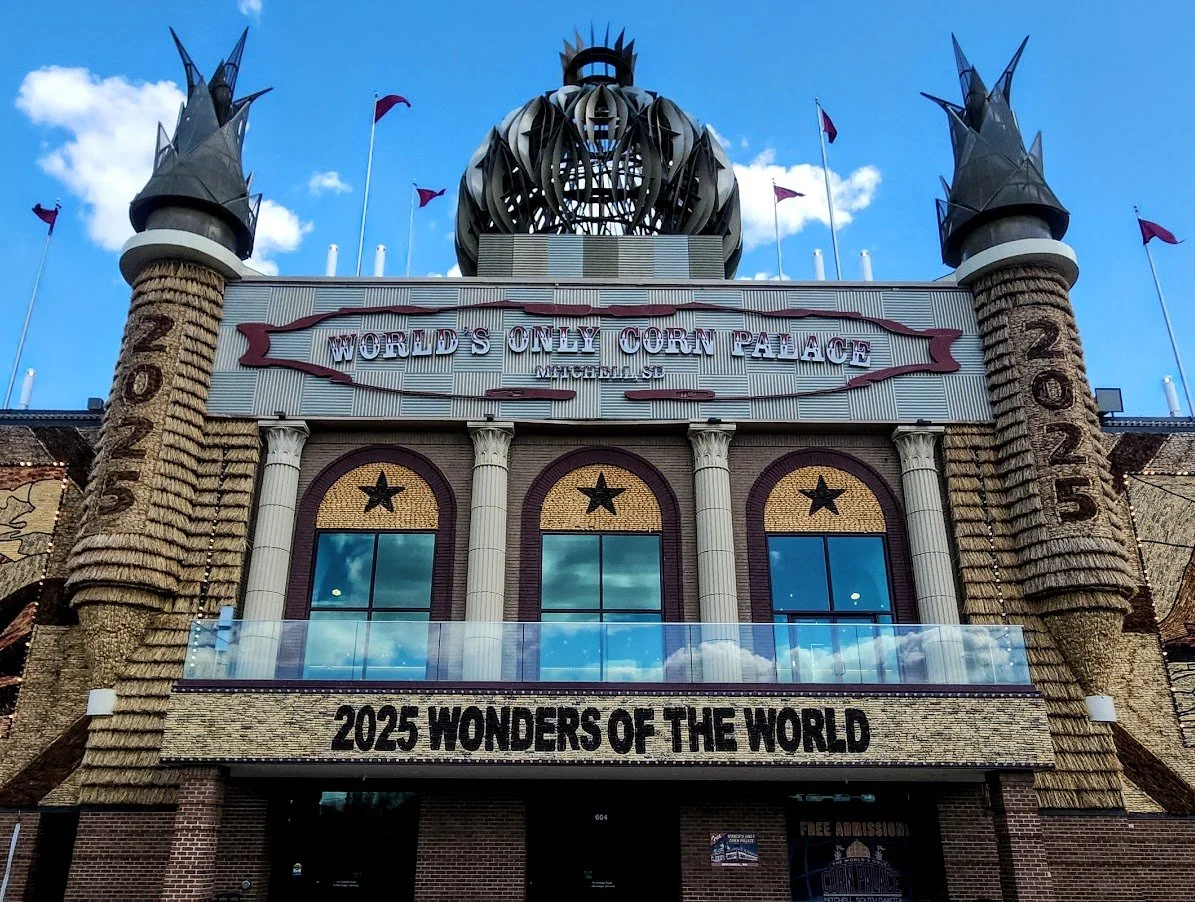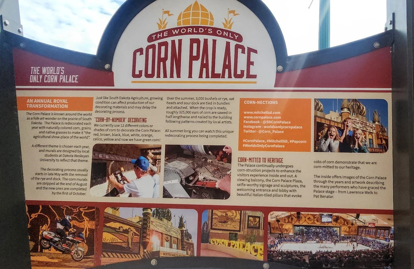 The World’s Only Corn Palace is located in Mitchell, South Dakota. It is open all year and free of charge. It is decorated with corn, grain and grass, and showcases a new theme each year. There are murals, informative, and fun displays on the inside and outside of the Corn Palace, and there is a store across the street, and free parking. The auditorium inside the Corn Palace is also a sports and entertainment venue.