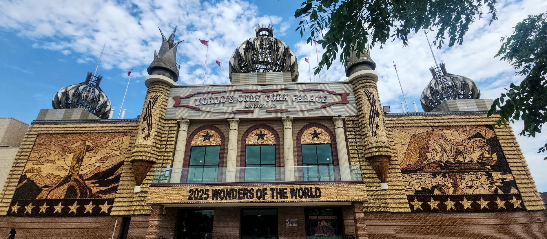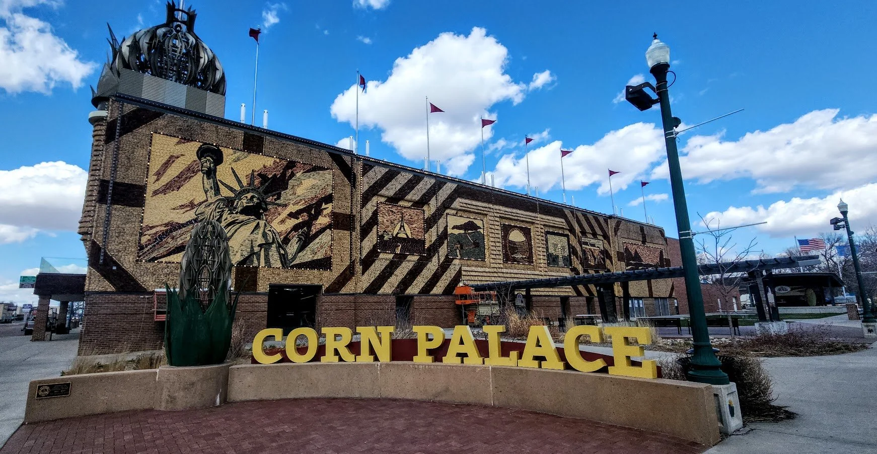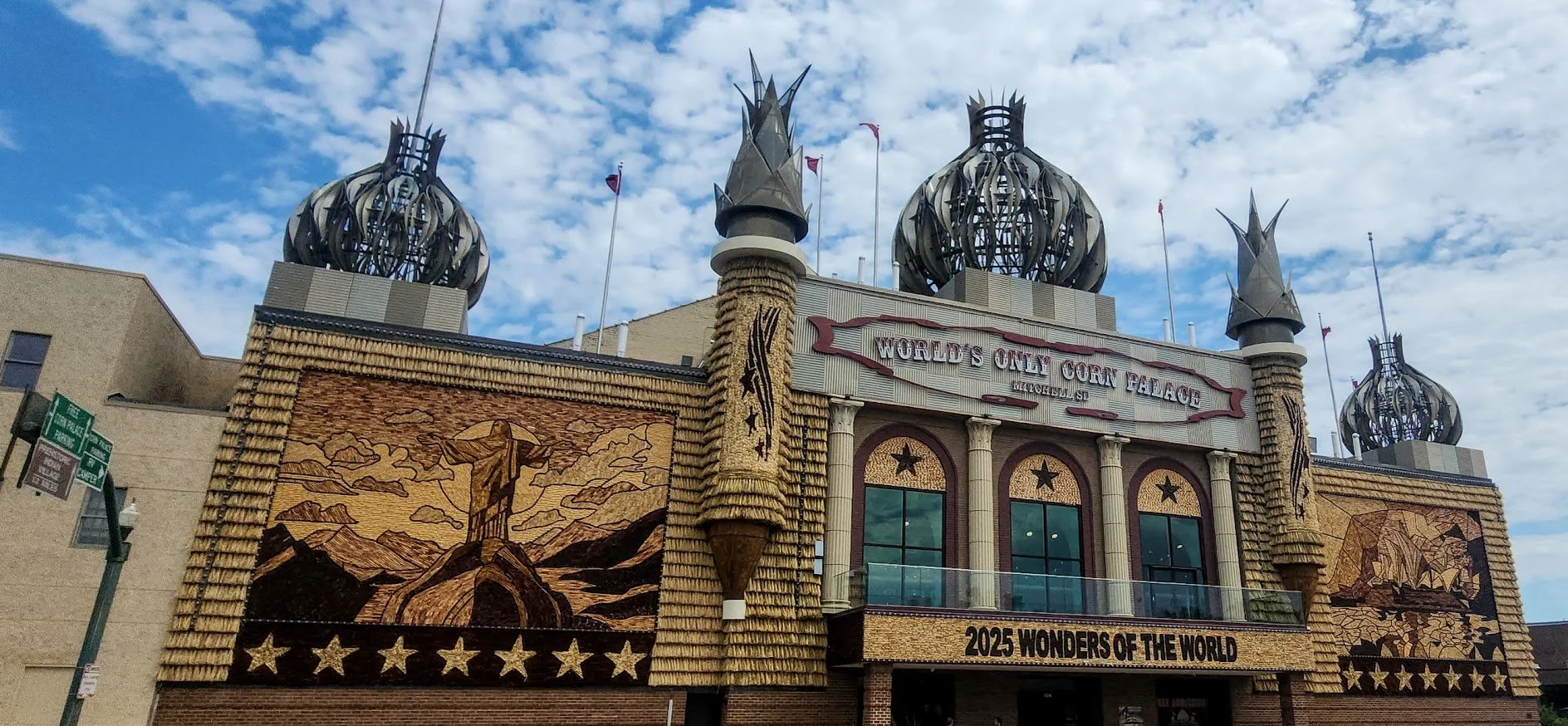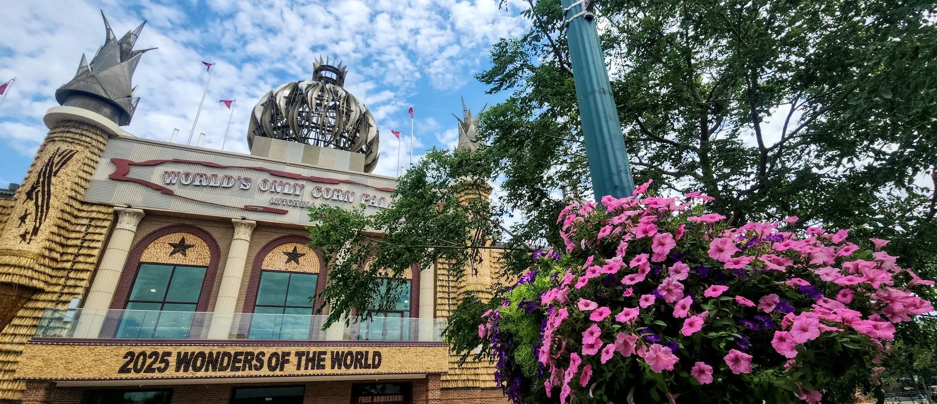 The World’s Only Corn Palace is located in Mitchell, South Dakota. It is open all year and free of charge. It is decorated with corn, grain and grass, and showcases a new theme each year. There are murals, informative, and fun displays on the inside and outside of the Corn Palace, and there is a store across the street, and free parking. The auditorium inside the Corn Palace is also a sports and entertainment venue.