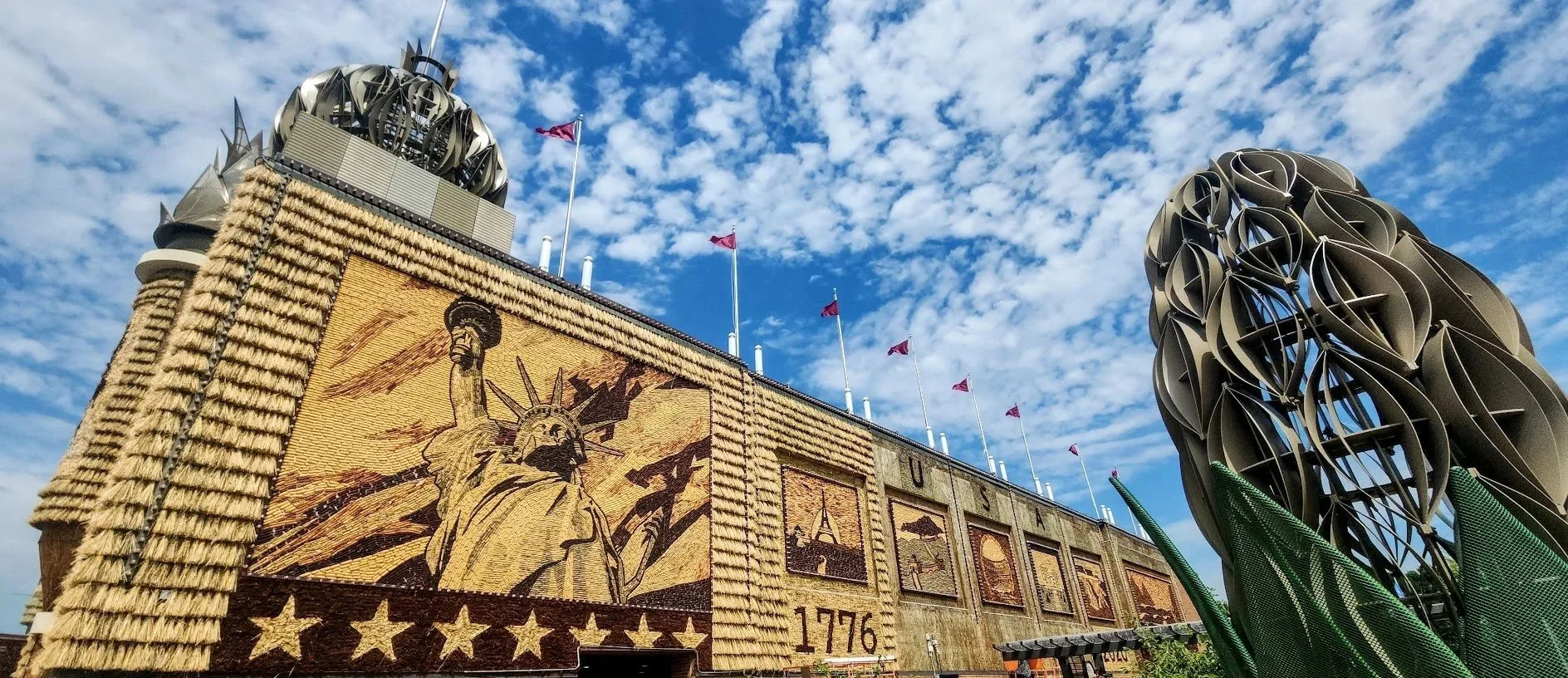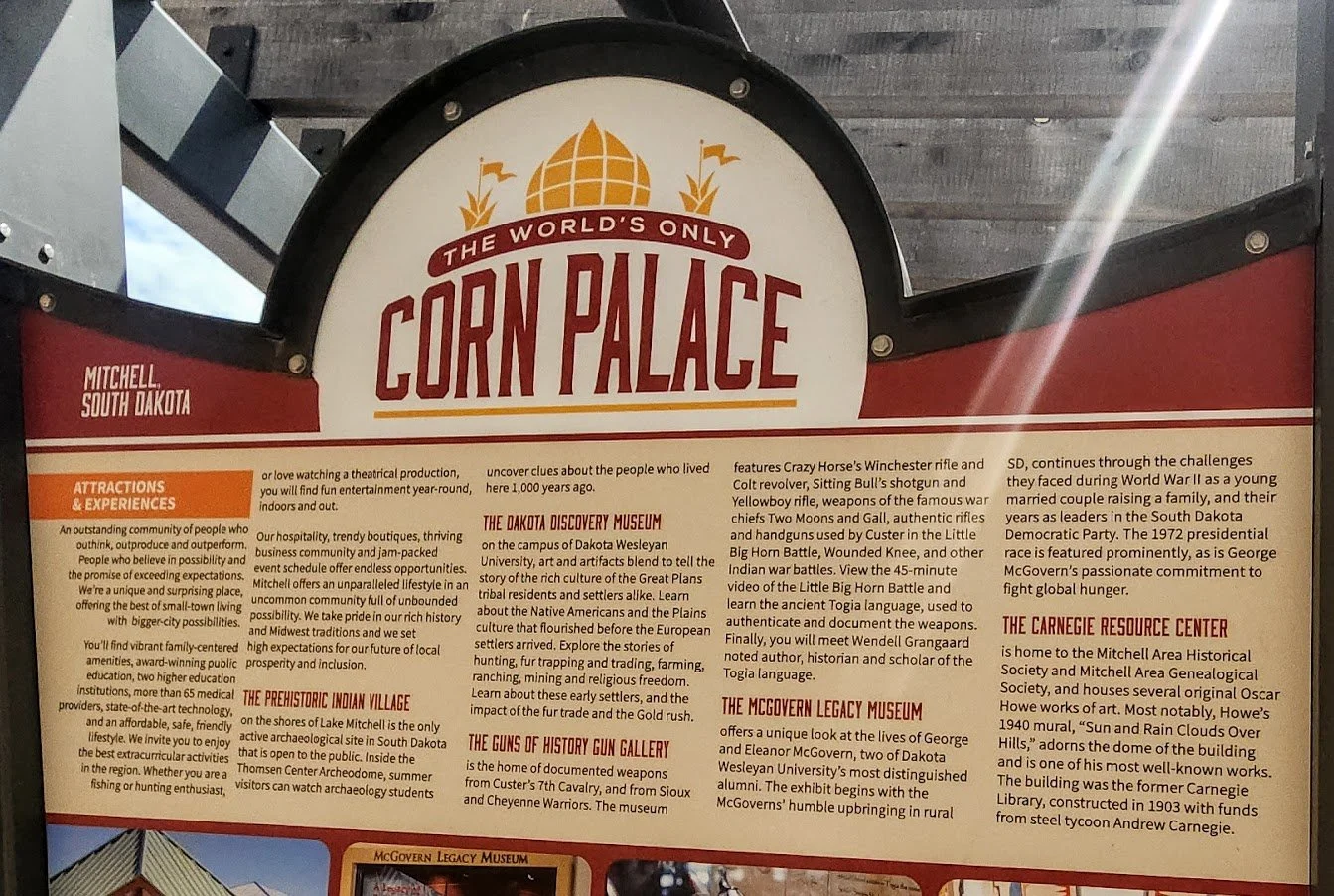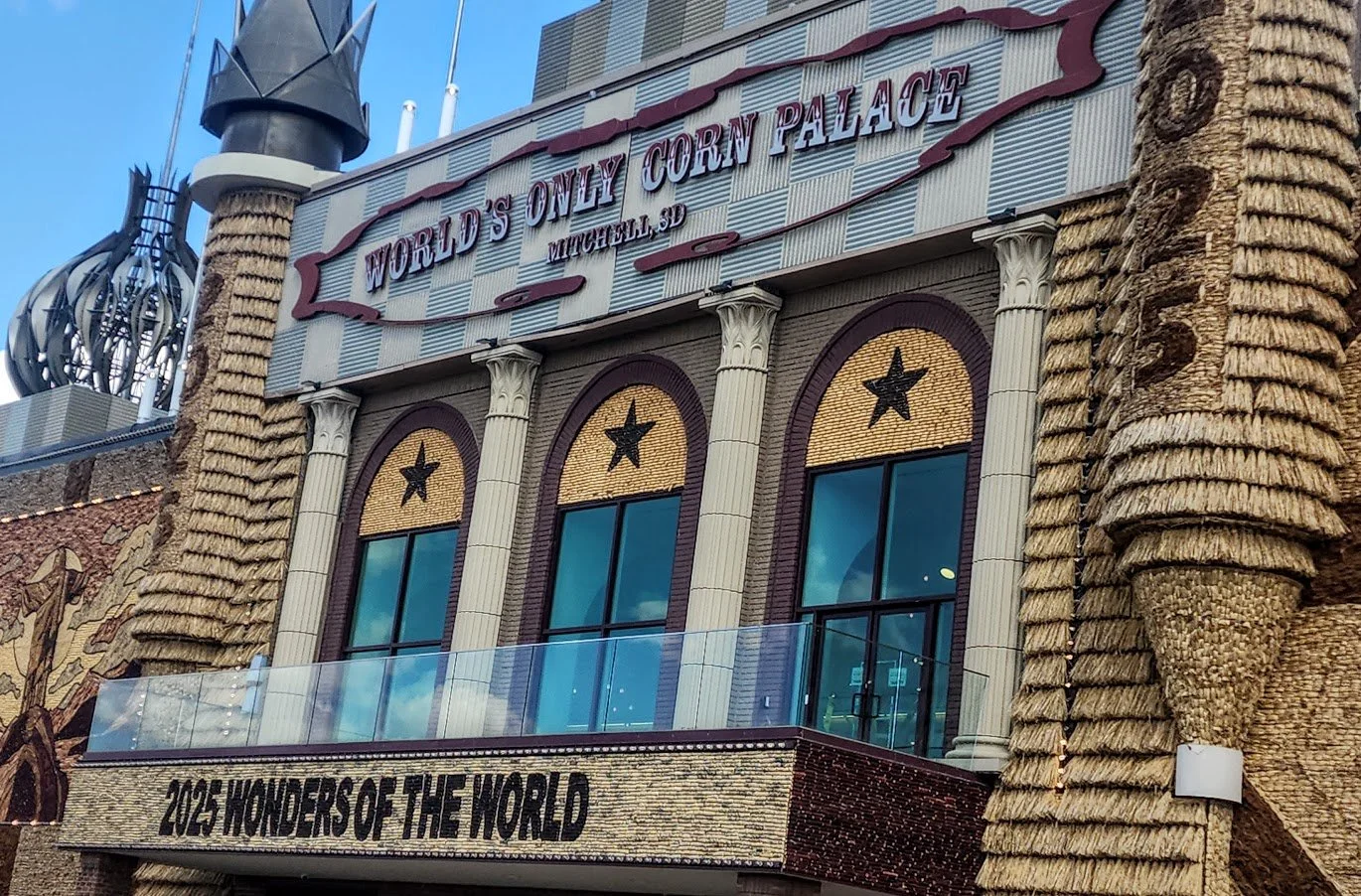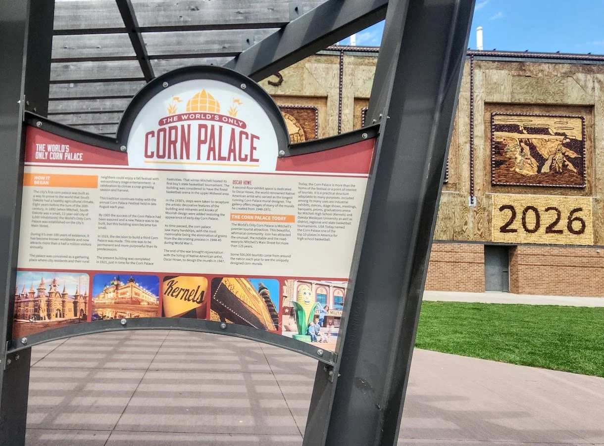 The World’s Only Corn Palace is located in Mitchell, South Dakota. It is open all year and free of charge. It is decorated with corn, grain and grass, and showcases a new theme each year. There are murals, informative, and fun displays on the inside and outside of the Corn Palace, and there is a store across the street, and free parking. The auditorium inside the Corn Palace is also a sports and entertainment venue.